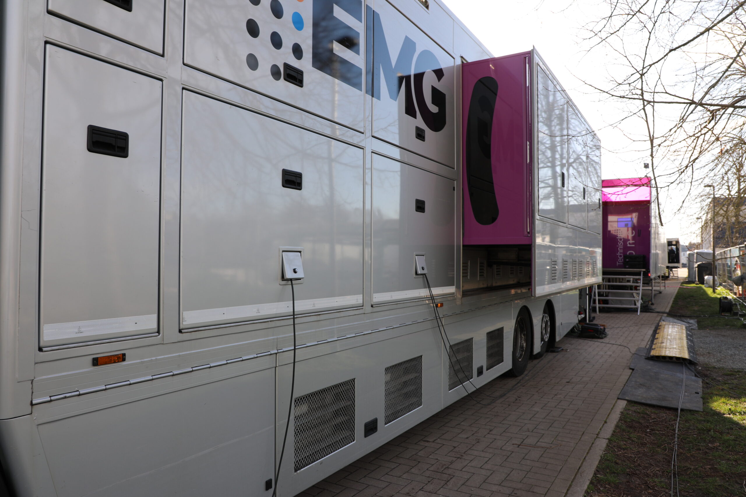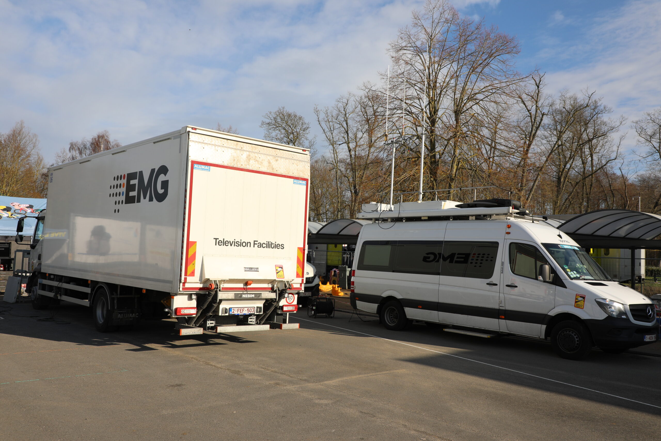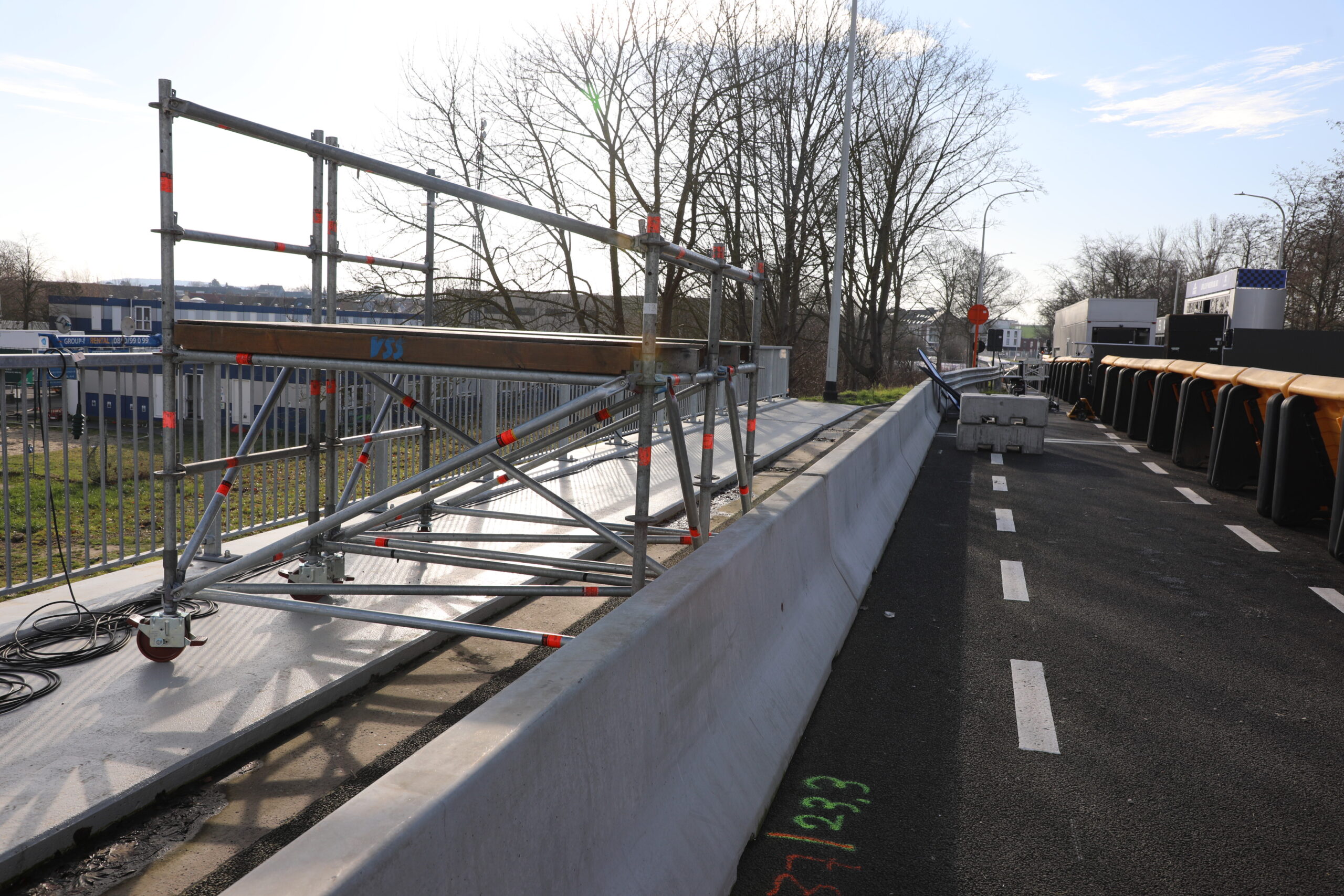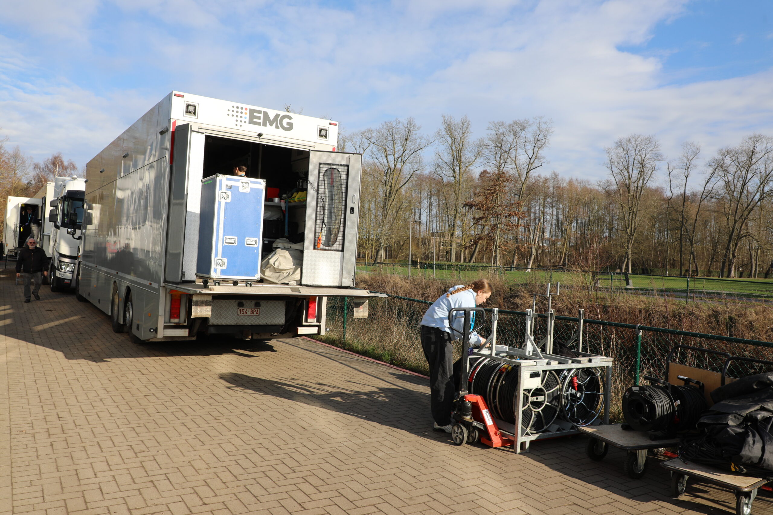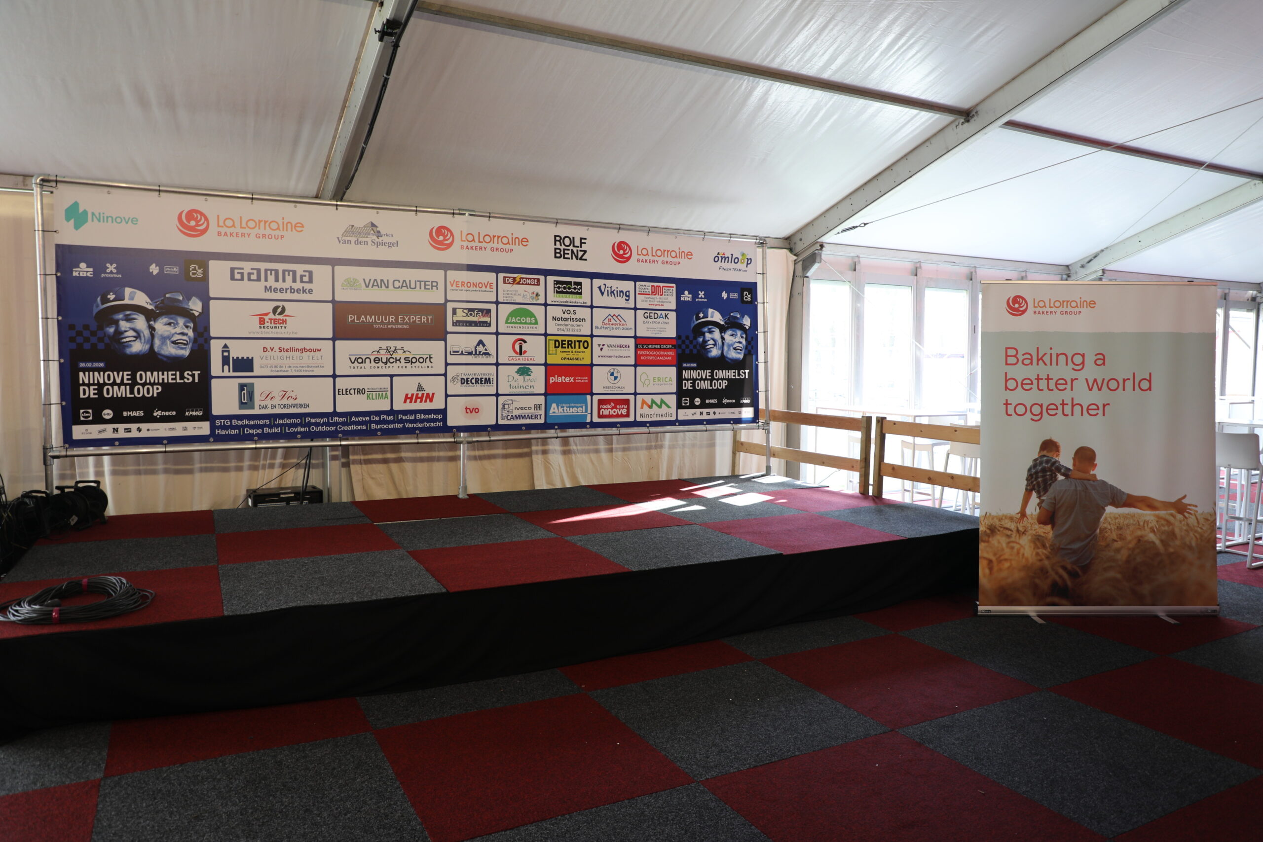 De dranghekken en de gele barrières en bumpers zijn geplaatst, de aankomstboog staat stevig, de lijn is gespoten en de VRT heeft een mediadorp opgetrokken in de laatste rechte lijn.