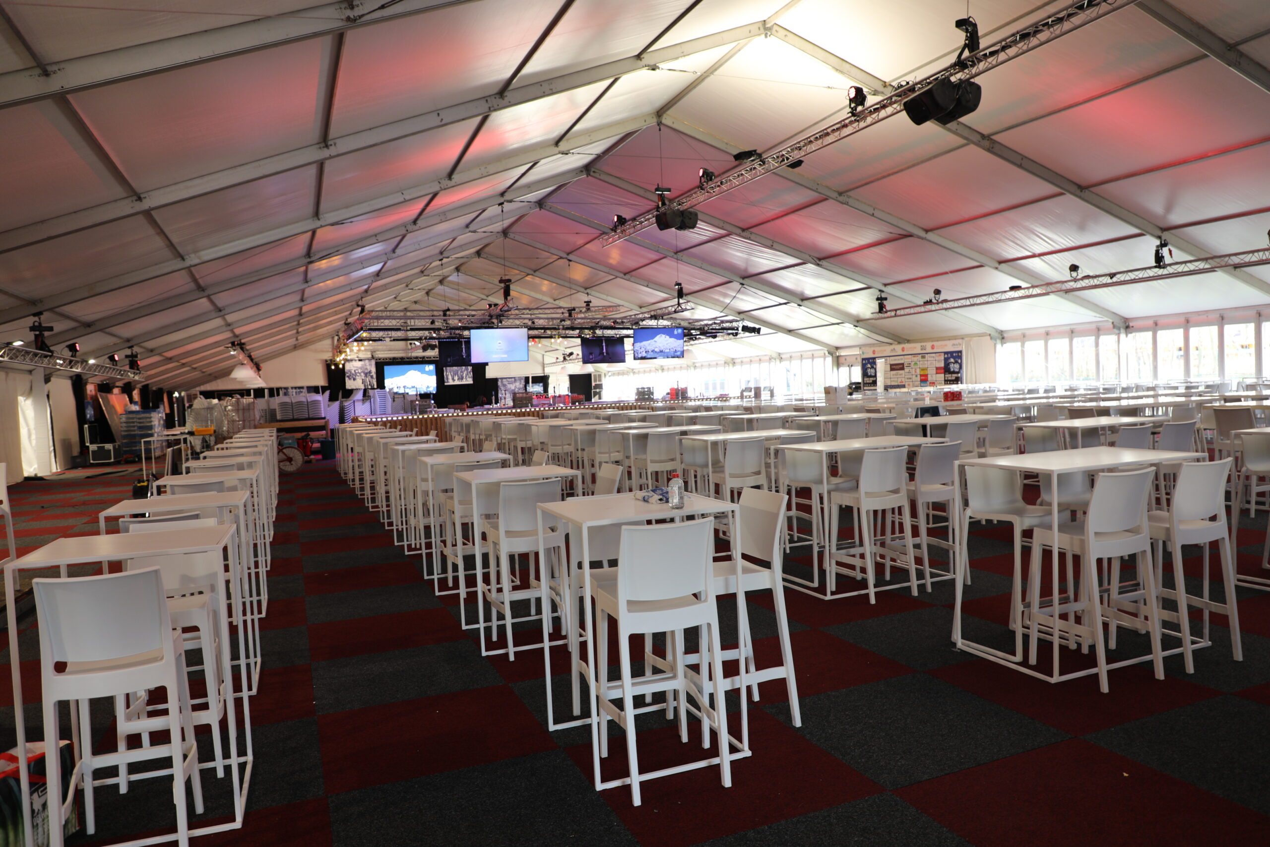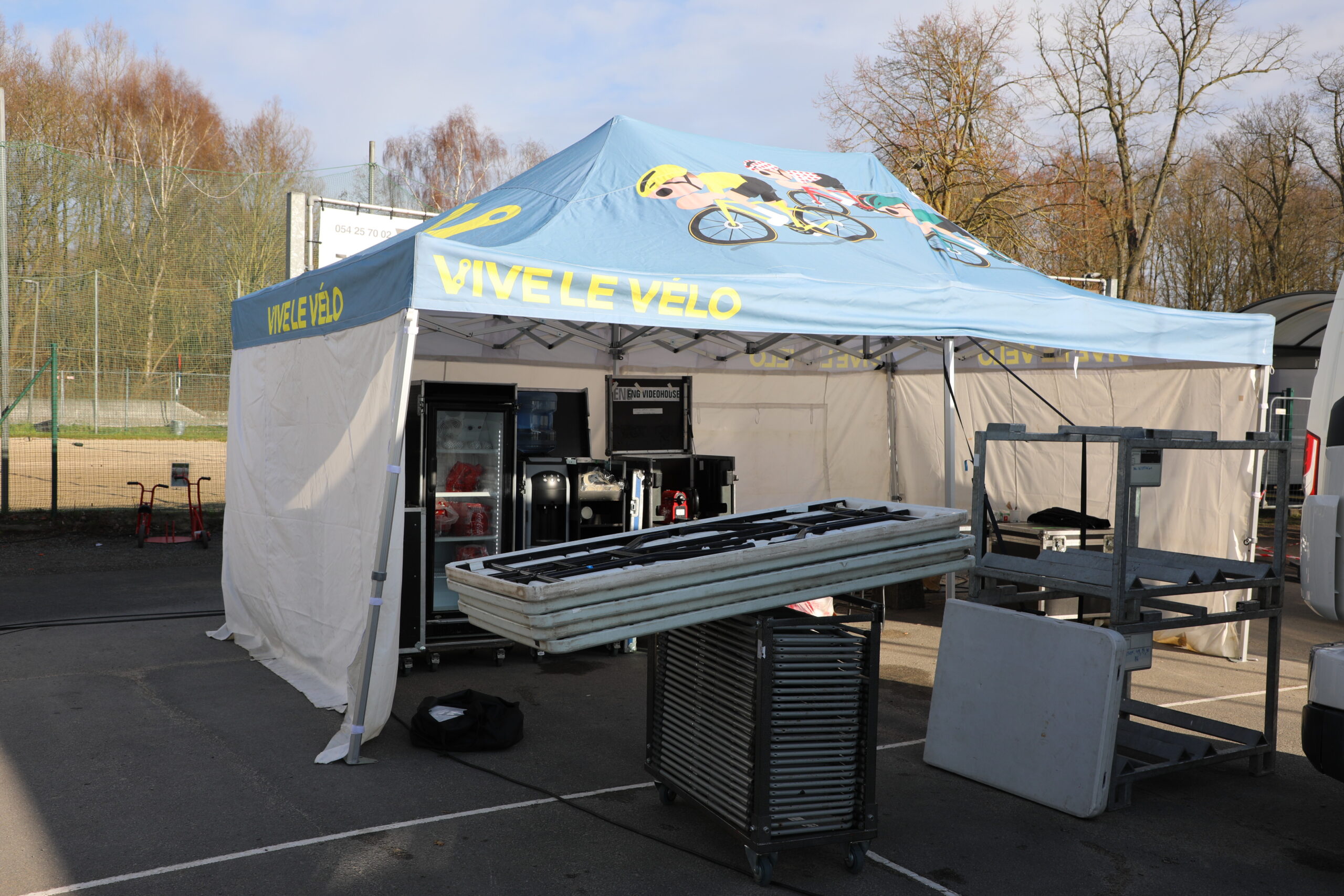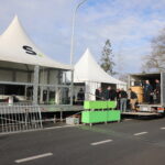 In de omgeving van de Elisabethlaan is ondertussen alles in gereedheid gebracht en is de aankomstzone volledig opgebouwd.