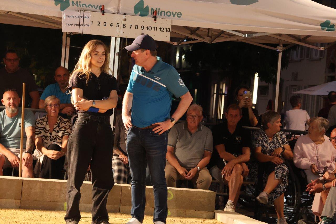 Op de lijst van gelegenheidspetanquers stonden het muzikaal duo Bram & Lennert, karnavalprins Kim De Kock, zangeres Alice Mae, Geo De Cleer van het Omloop Finish Team en buurtpolitieman/Legomaster Andy Peelman.