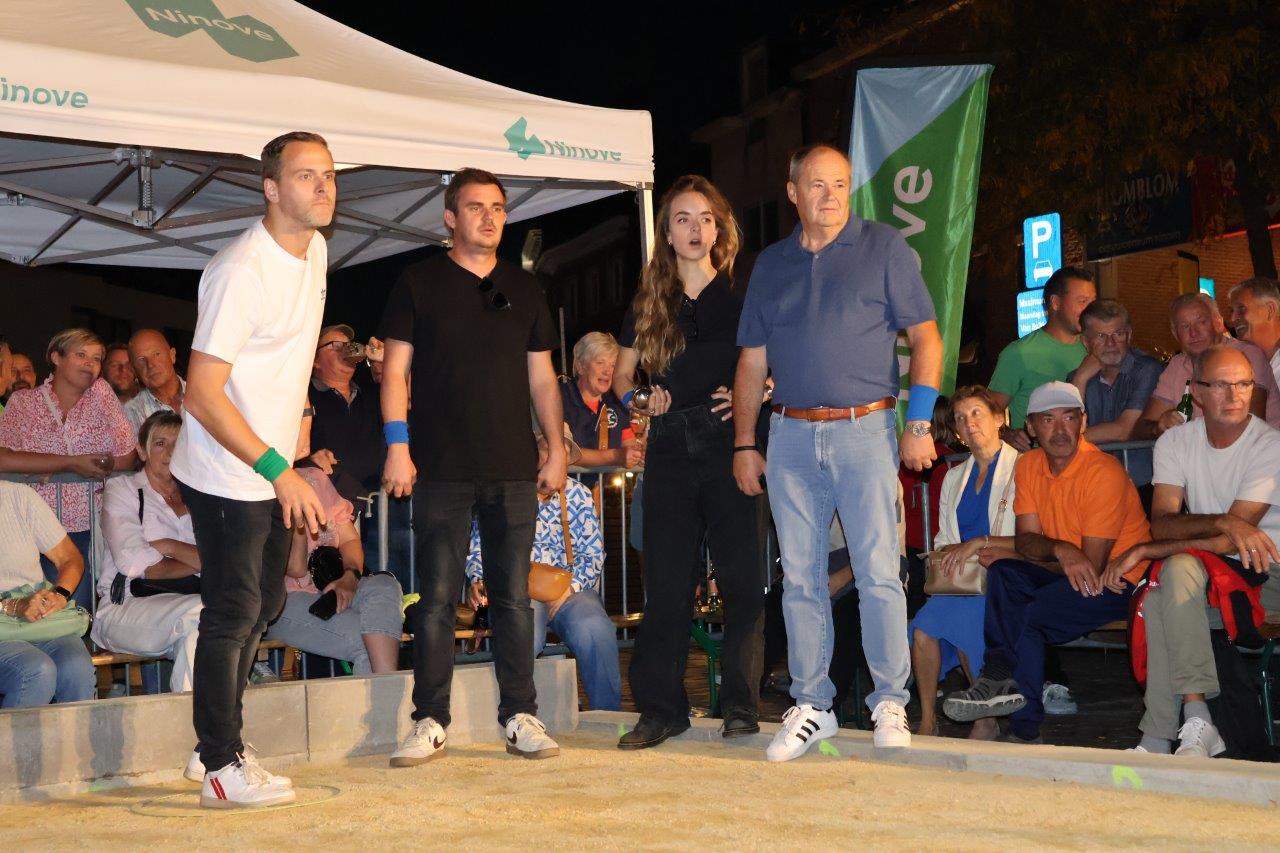 NINOVE – Zes stadsgenoten mochten vrijdagavond 19 september het finaleweekend opengooien tijdens een bijzondere galamatch op het speciaal aangelegde petanquearena op de Graanmarkt.