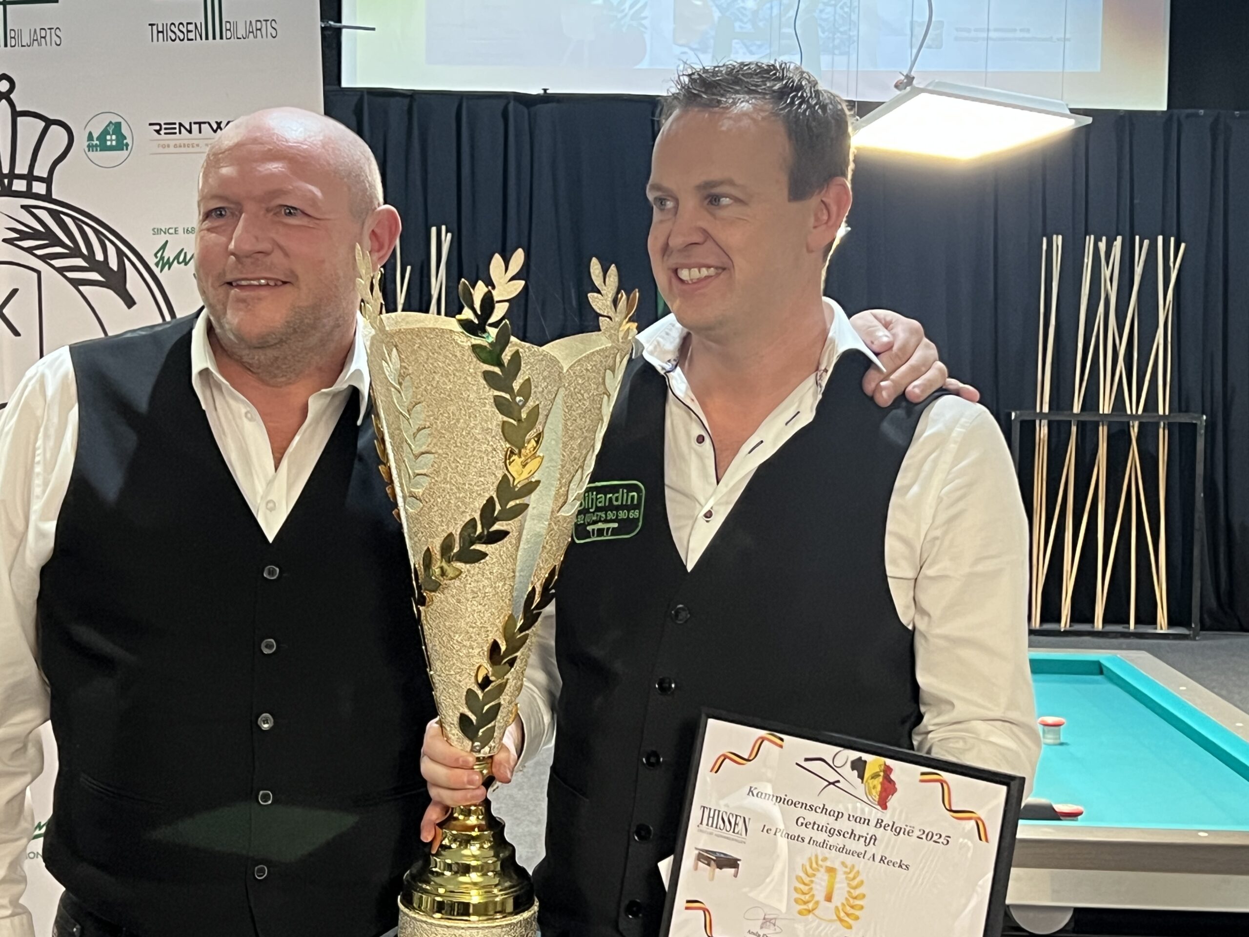 Na zijn winst in de finale, was Chris uiteraard in de wolken. “Het was super. Ik heb denk ik weinig mis gedaan en had de wedstrijd onder controle. Na de titel in de D-reeks, is het volgend jaar de C-reeks, die waarschijnlijk moeilijker zal zijn.” Zijn fiere echtgenote deelde alvast in de vreugde om de Belgische titel.