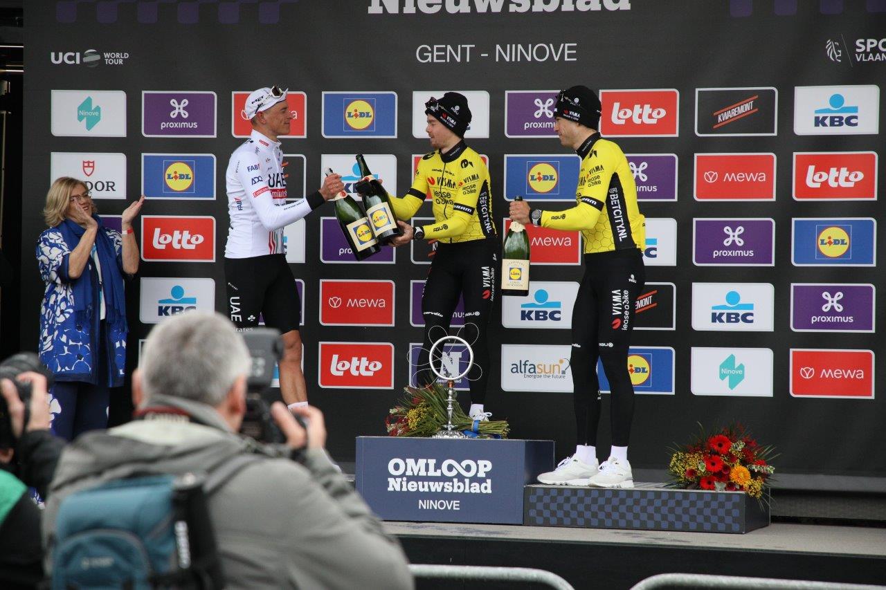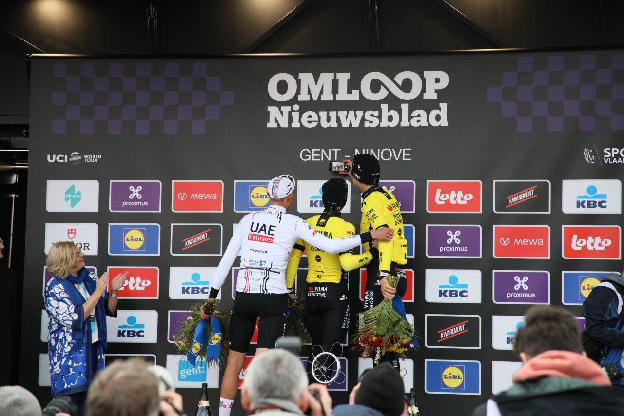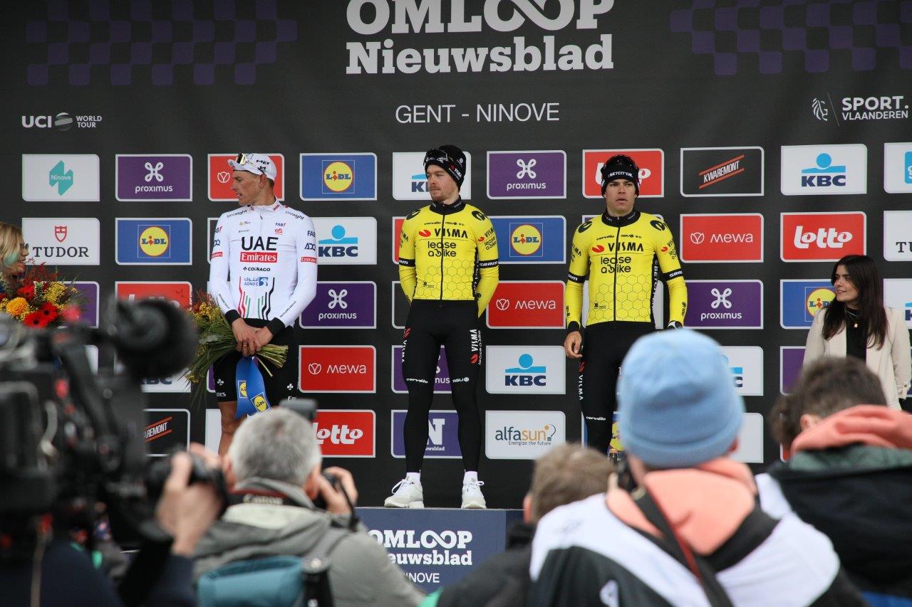 Die zagen Jan Tratnik de sprint winnen voor Nils Politt en onze landgenoten Wout Van Aert en Oliver Naesen. Het was dus al voor het derde jaar op rij dat een renner van de Visma-Lease A Bike formatie op het hoogste schavot mocht plaats nemen.
