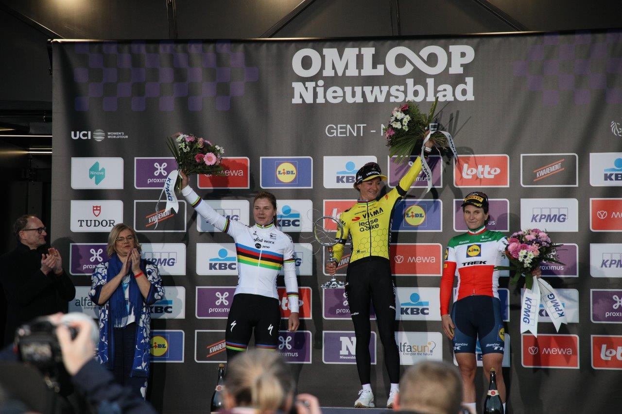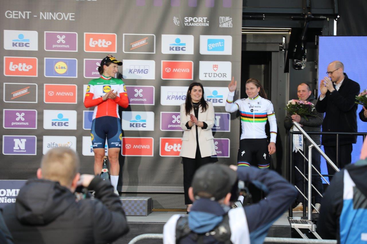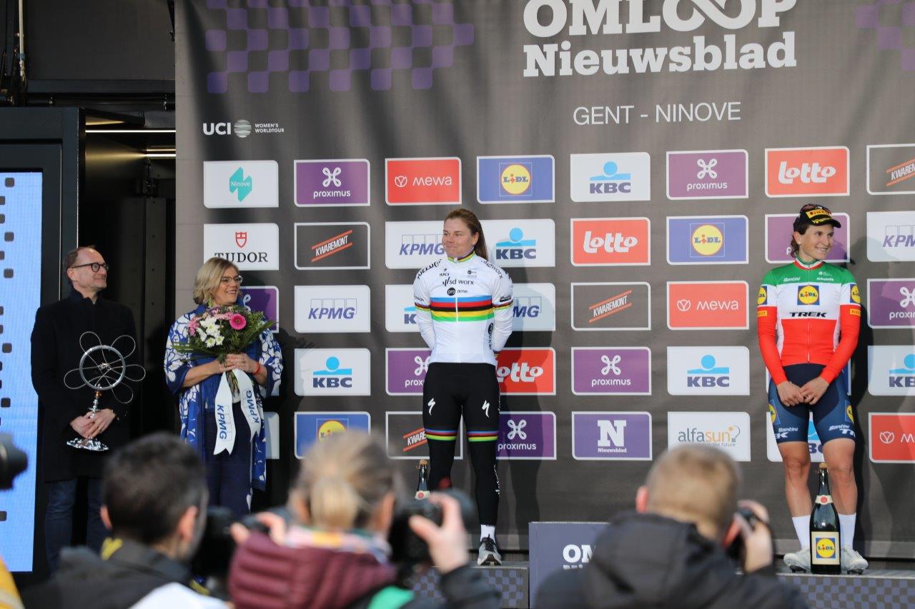 Een uurtje later was het de beurt aan de dames om de wedstrijd te beslechten in een spurt. Marianne Vos was te sterk voor Lotte Kopecky, die mooi tweede werd en zo net voor Elisa Longo Borghini eindigde.
