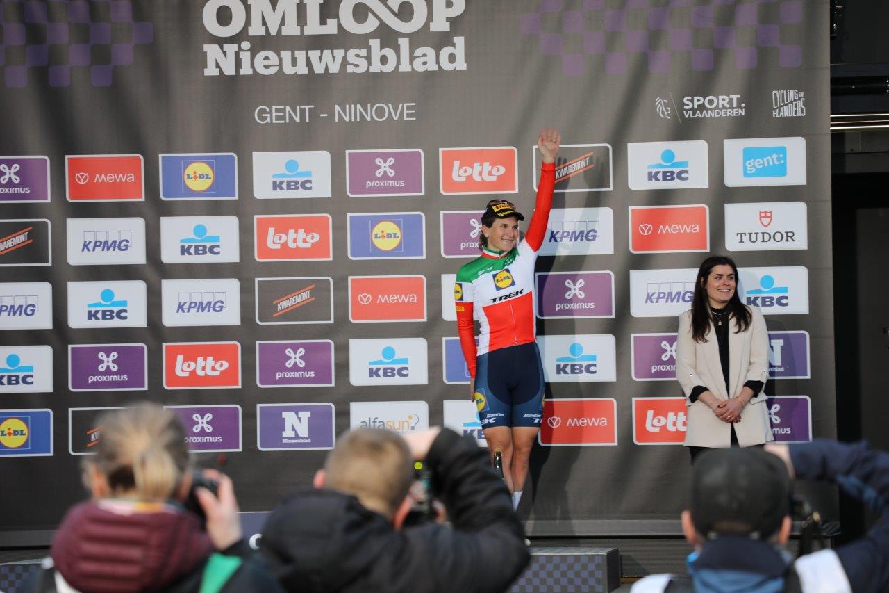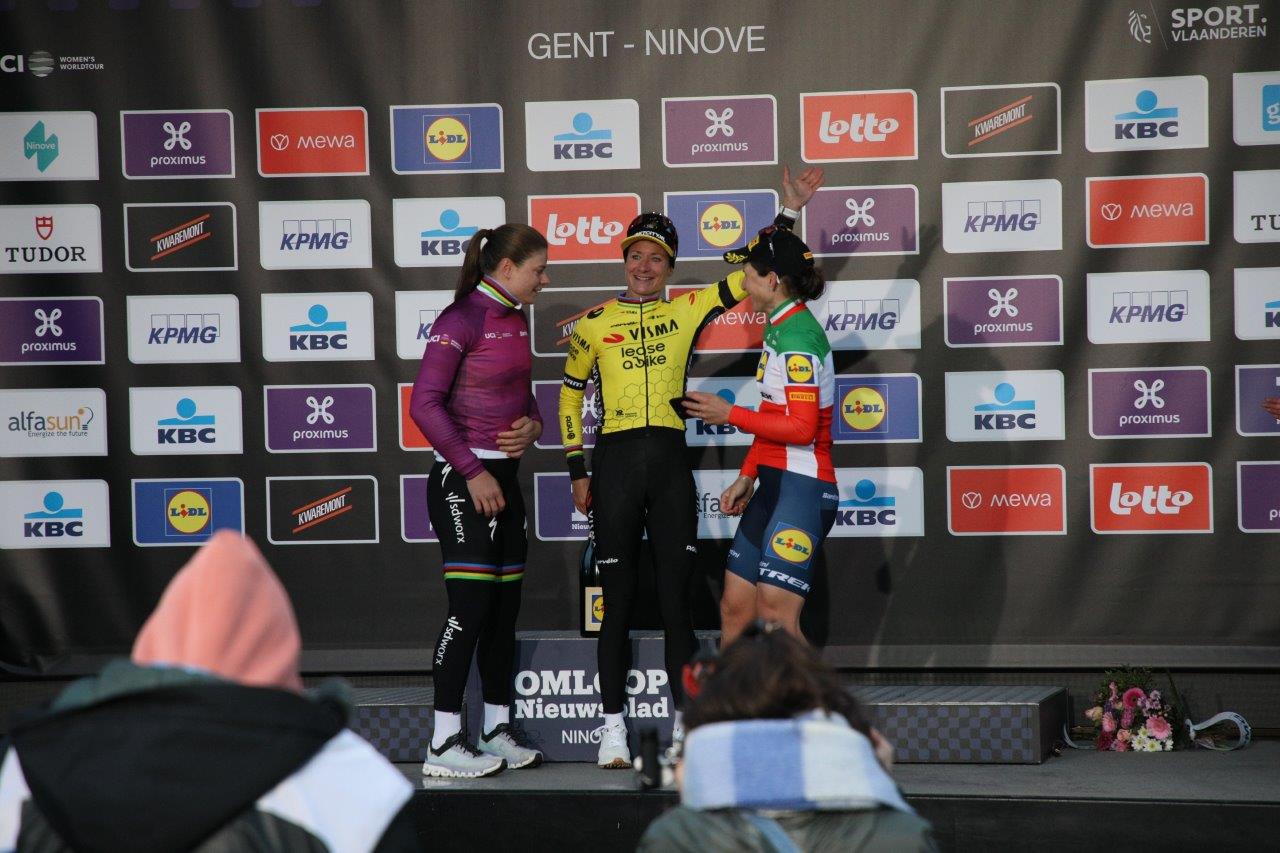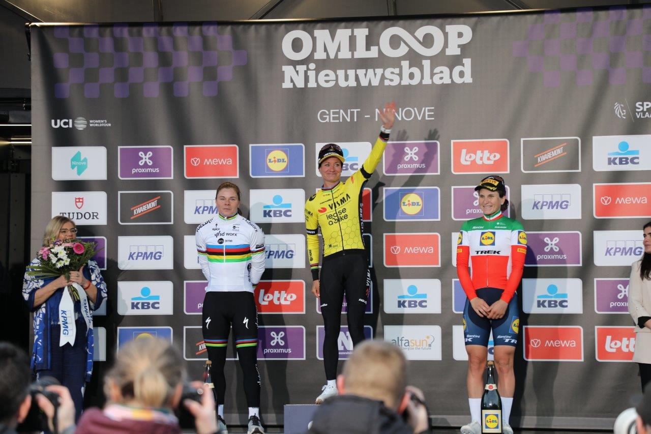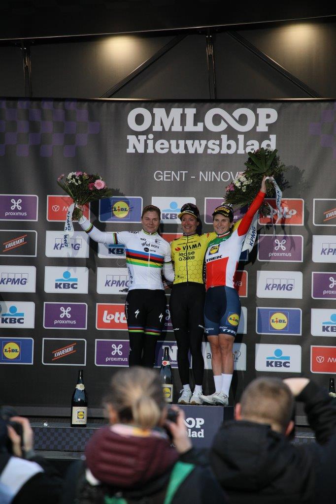 Een uurtje later was het de beurt aan de dames om de wedstrijd te beslechten in een spurt. Marianne Vos was te sterk voor Lotte Kopecky, die mooi tweede werd en zo net voor Elisa Longo Borghini eindigde.