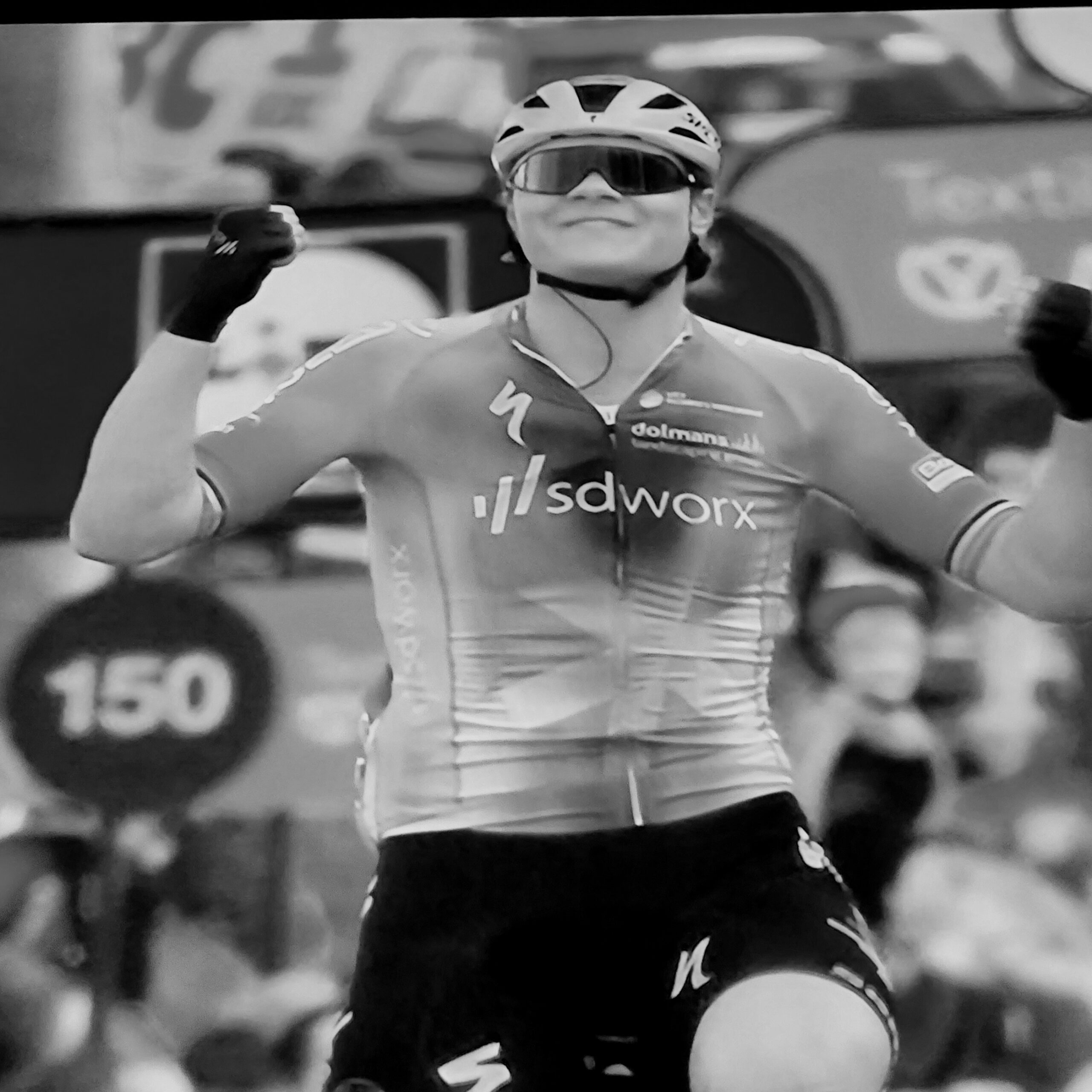 Zij demarreerde weg uit een achtervolgend groepje op de Vesten in Geraardsbergen om vervolgens de Cubaanse Sierra net voor de Bosberg bij te halen en meteen ter plaatse te laten. Kopecky perste alles uit haar sterke benen en triomfeerde solo op de Elisabethlaan.