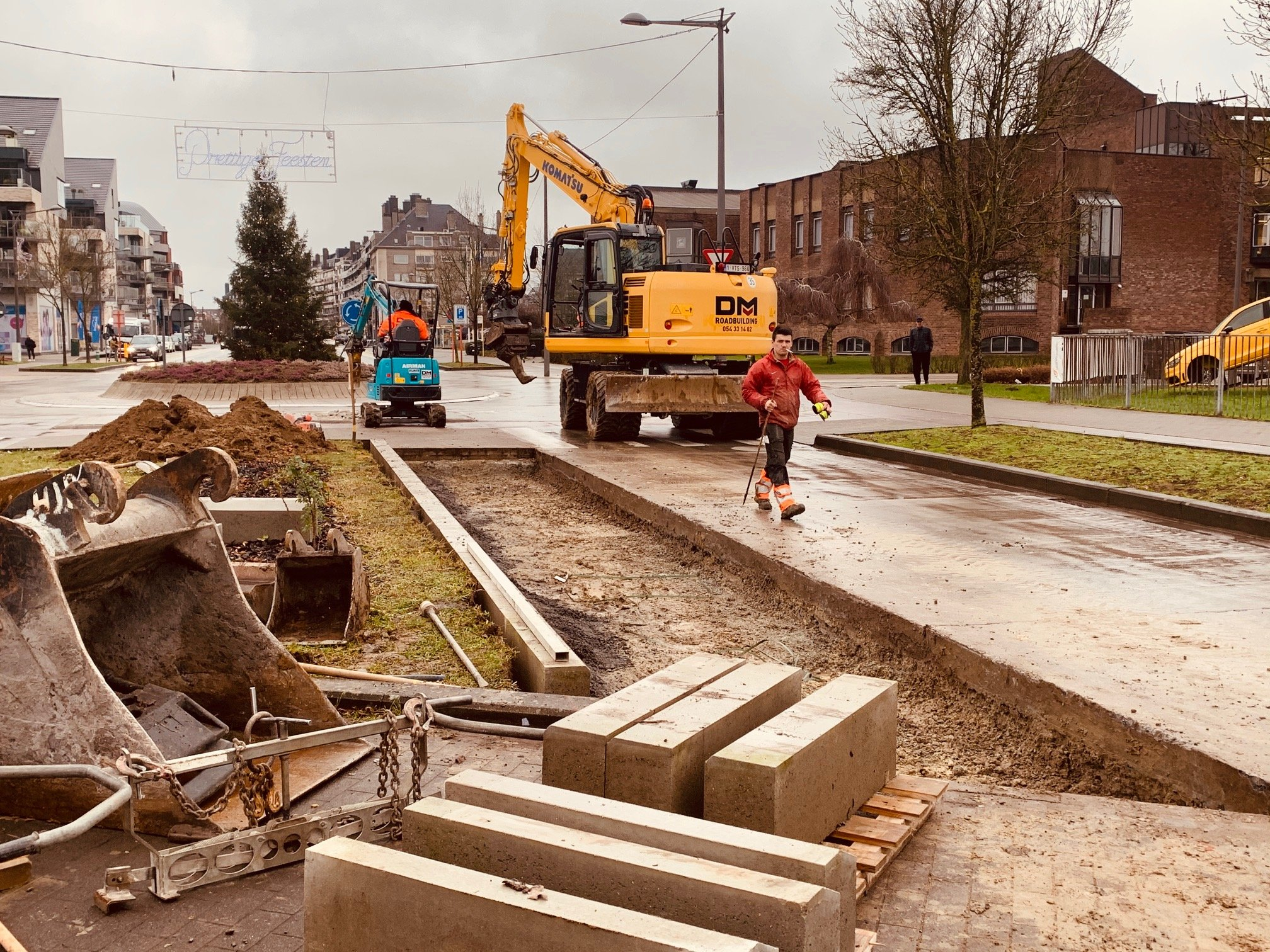 NINOVE – Ter hoogte van de rotonde aan het stadshuis komt op de Centrumlaan een extra strook betonklinkers. Op die manier kunnen de renners een iets bredere bocht naar de Onderwijslaan nemen.