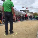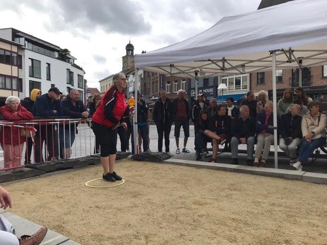 Voor deze apotheose van het petanquekampioenschap tussen de dorpen en de wijken van Ninove en de deelgemeenten was op de Graanmarkt een tijdelijk terrein aangelegd.