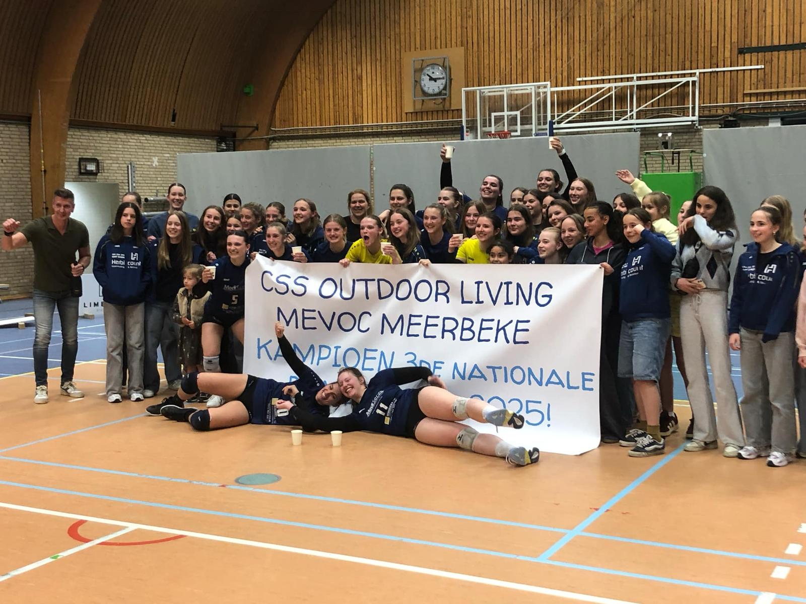 De volleydames uit Meerbeke maakten het in stijl af: 21-25, 11-25 en 22-25 en de kurken konden knallen.