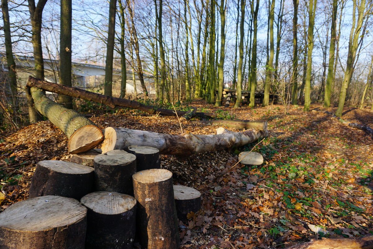 Ter hoogte van ingang C aan de Vissersparking in de Kampstraat is een speelbosje aangelegd. Iedereen mag er klauteren, verstoppertje spelen, een kamp bouwen, ronddwalen op blote voeten of gewoon ontspannen op een boomstam-stoel.