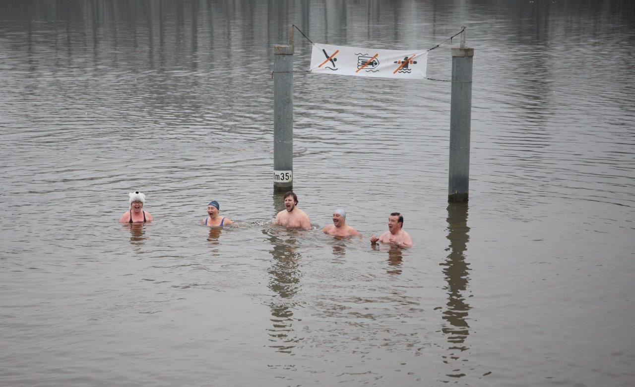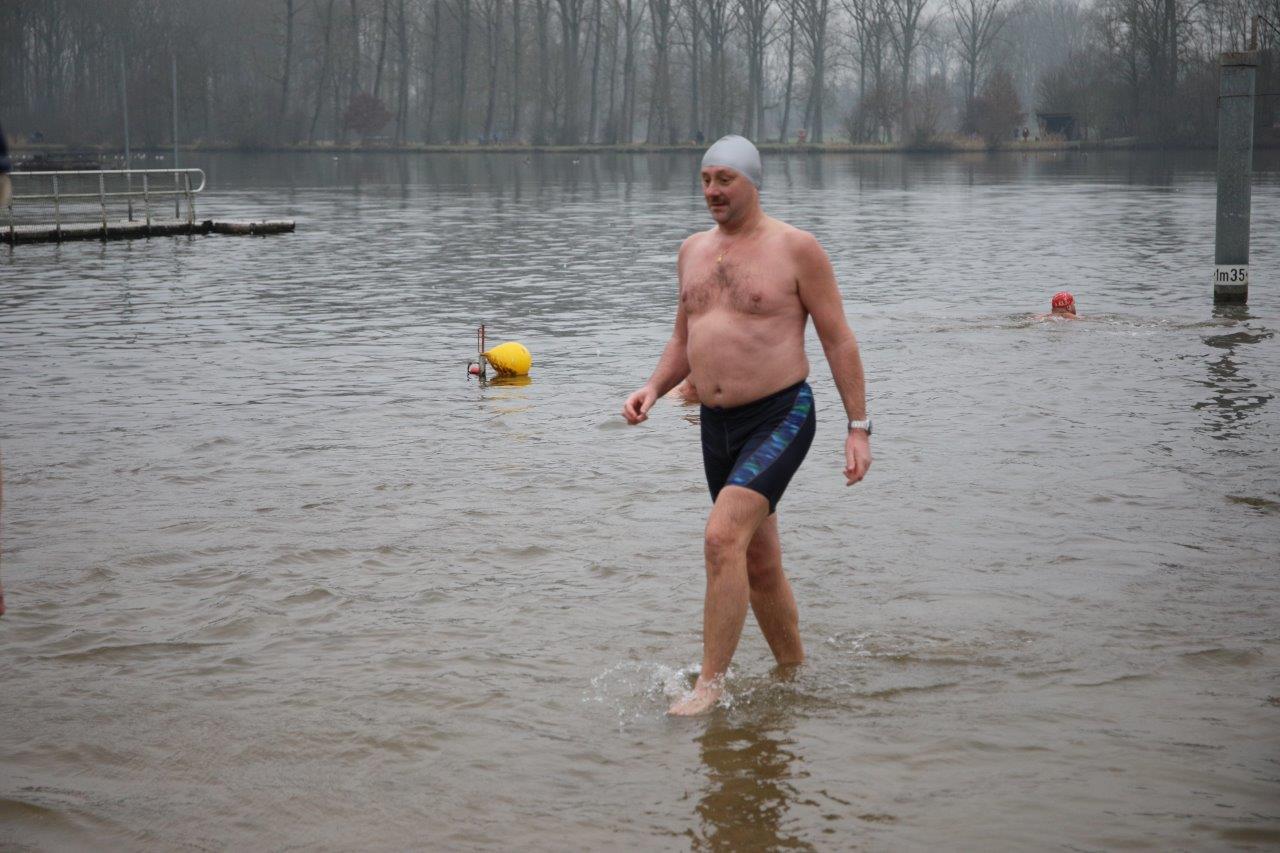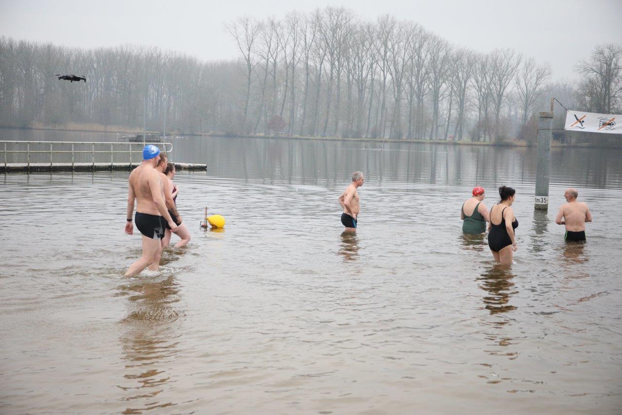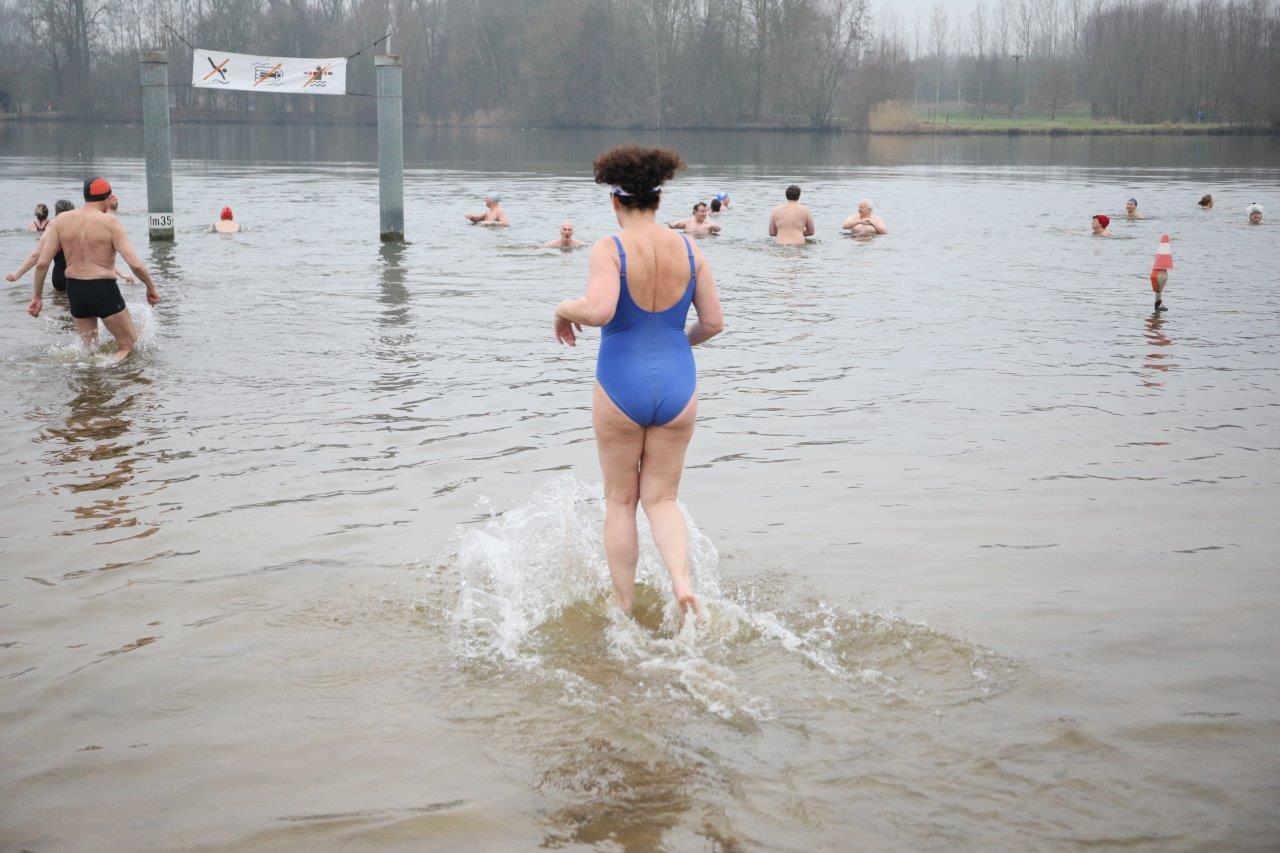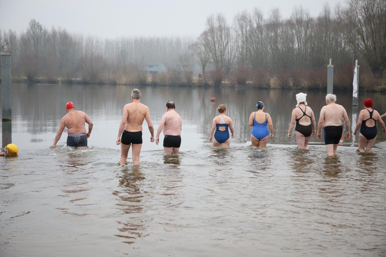 Van september tot einde maart zwemmen ze hier elke zondagochtend. Ooit lag de vijver dicht, op een eendenwak na.