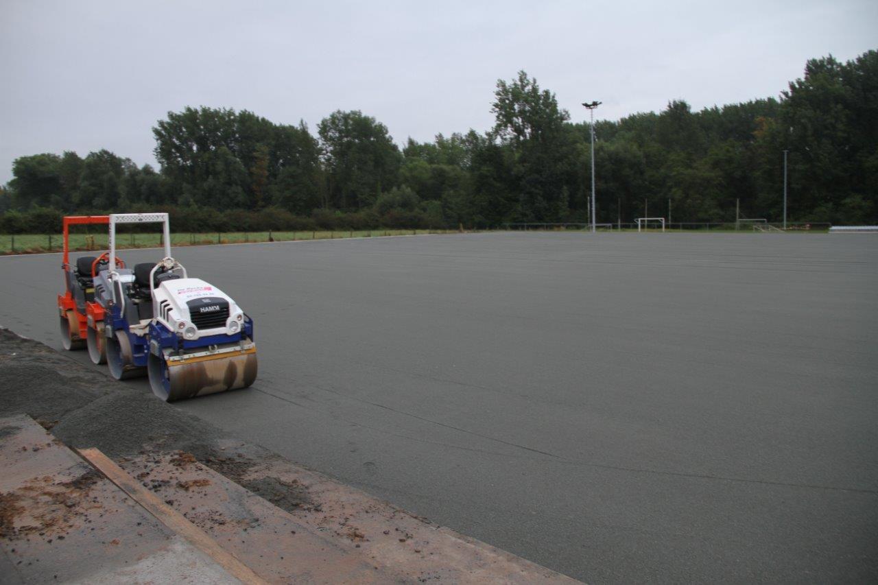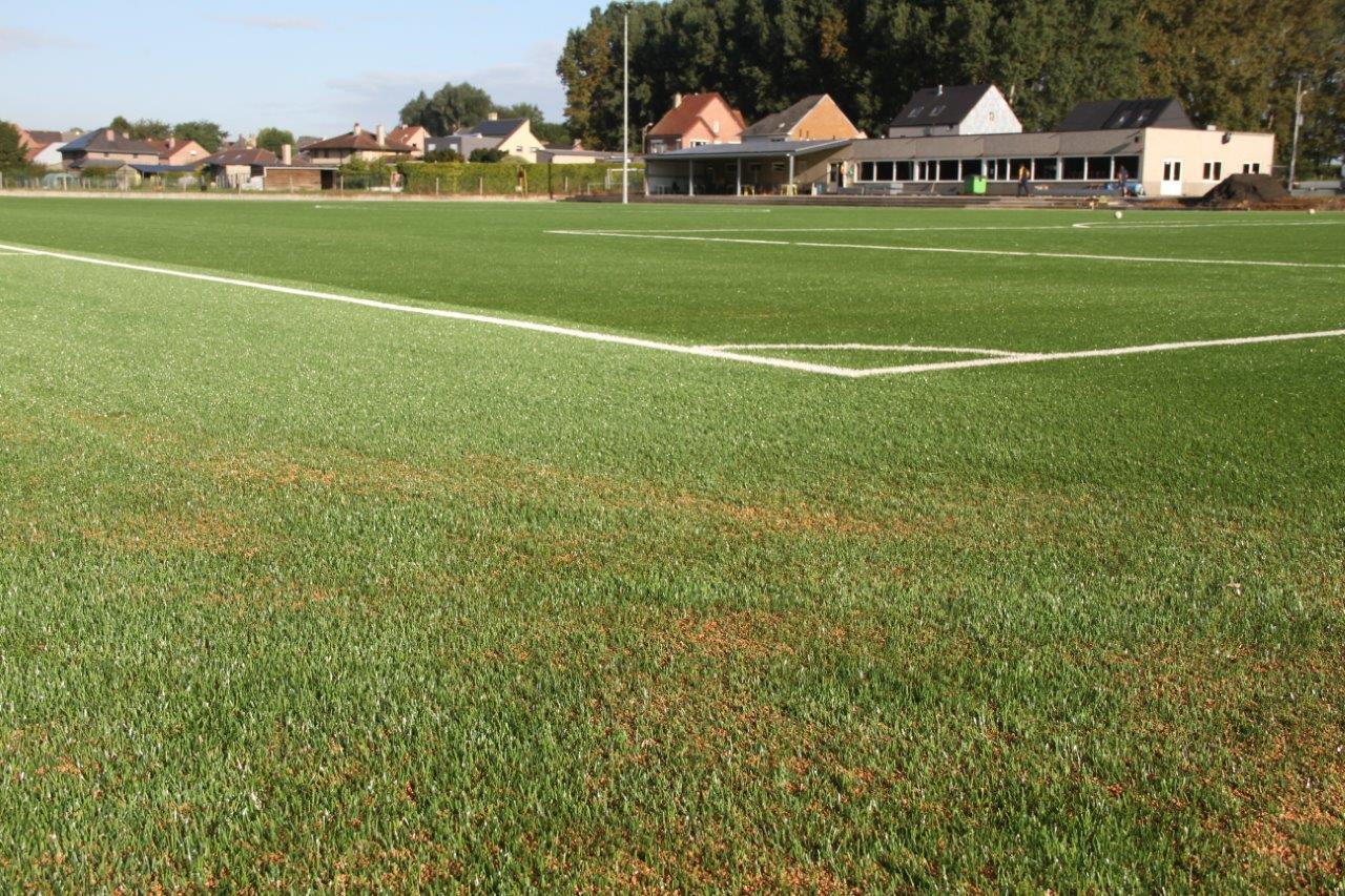 Nog een interessant detail. Dit kunstgrasveld zou het eerste in de streek zijn met kurkkorrels in plaats van rubberkorrels. Dit betekent een meeruitgave, maar is wel beter voor het milieu. Op termijn zullen kunststofkorrels trouwens verboden worden en dus leek de keuze voor kurk logisch.
