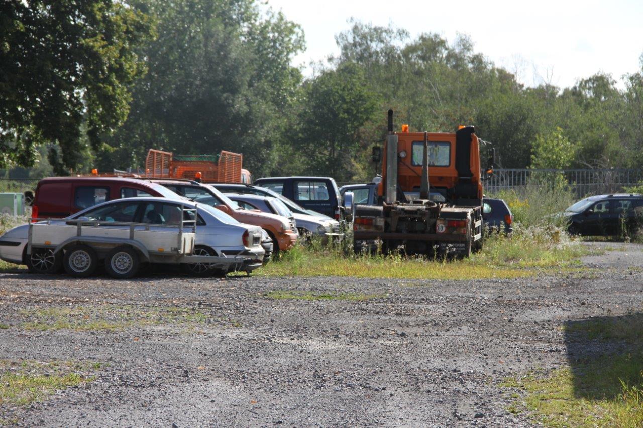 De voertuigen bevinden zich op de parking van de technische dienst of op de openbare weg. De sportrekken staan bij de technische dienst.