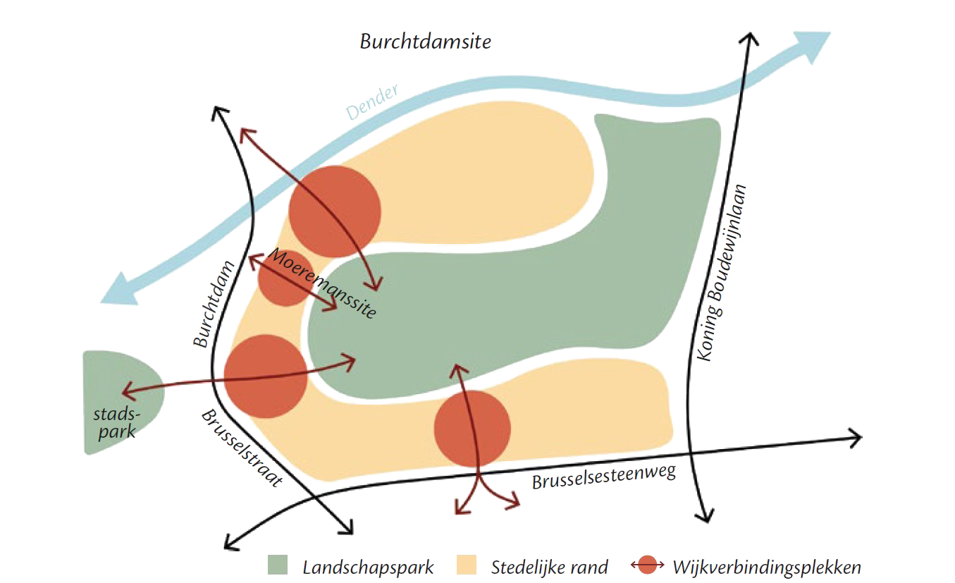 De aanleg van het landschapspark ‘Burchtdam’ door de stad wordt volgens dezelfde filosofie ontwikkeld en is een voorloper op de plannen van de Vlaamse Overheid.