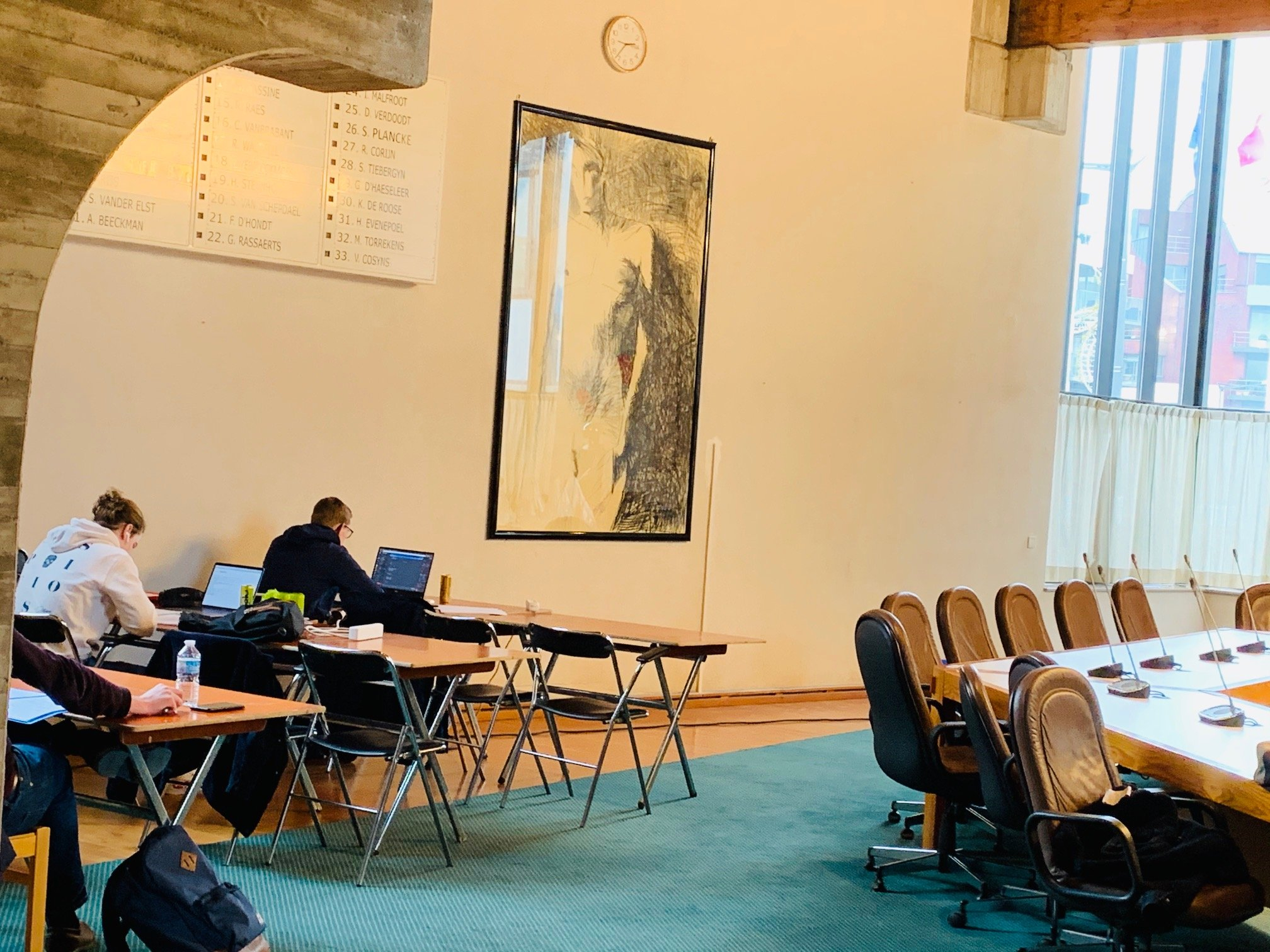 En dus wat het zoeken naar een alternatief. “Tot 8 januari konden de studenten terecht in een bijzaaltje van het cc De Plomblom. Nadien was plaats voor hen in De Kuip, met uitzondering van vandaag (14 januari, halve dag), morgen en overmorgen. Er is daar namelijk al lang gepland om er het slotmoment van ‘Frames’ te organiseren en de provincie had daarover ook al ruim gecommuniceerd. Alle andere zalen waren al bezet. We hebben dan de gemeenteraadszaal voor deze middag en de komende twee dagen ter beschikking gesteld; daar kunnen een 50 tal studenten terecht. Een buurthuis is geen alternatief omdat er WIFI moet zijn.”