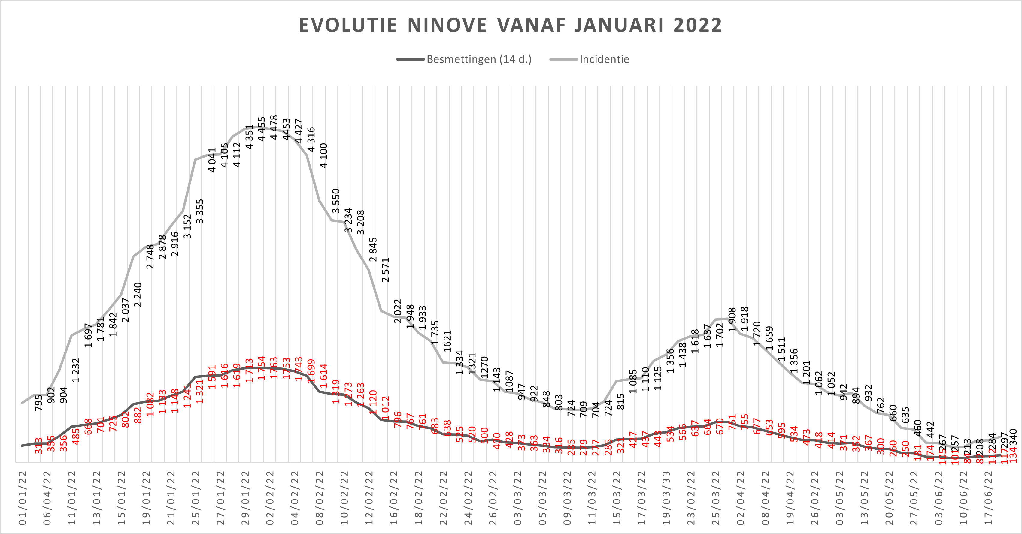 “Tot 23 mei 2022 zijn 2.200 mensen extra gevaccineerd: 80-plussers en bewoners van de woon-zorgcentra. Momenteel zijn we in een wachtfase met een beperkt team en een capaciteit van 120 vaccinaties per dag, met mogelijkheid om op te schalen tot 802 per dag. Er zijn in totaal 90.403 vaccins toegediend, voornamelijk in het centrum maar ook op locatie, bij de huisartsen en op afhaling. 85 % kreeg een eerste vaccin, 84,62 % is volledig gevaccineerd en 71,43 % een derde keer, met een extra voor de risicogroepen.”