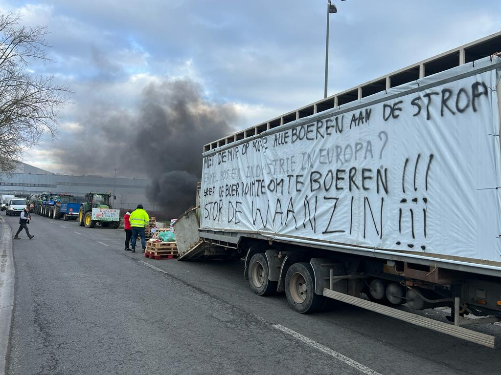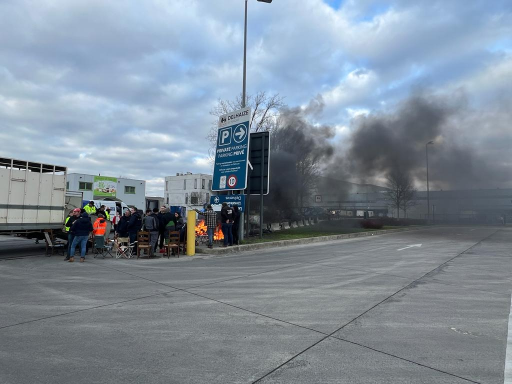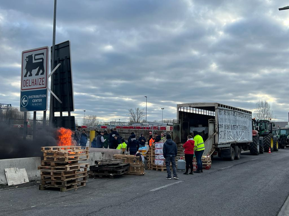 De werknemers van Delhaize waren dinsdagavond vroeger naar huis gestuurd, maar woensdag zijn de ploegen gewoon aan het werk gegaan. Voor de twee in- en uitgangen van het distributiecentrum aan de Nederwijk-Oost hadden de landbouwers hun tractoren geposteerd om de aan- en afvoer te verhinderen.
