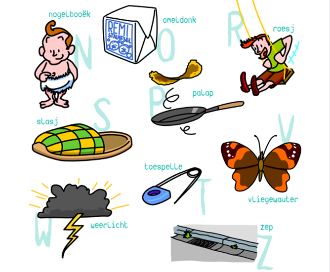 Om het wat gemakkelijker en vooral prettiger en aanschouwelijker te maken besloot de Werkgroep een aantal typische Ninoofse woorden uit het boek als ‘Cartoontjes’ naar het grote publiek te brengen. Een eerste reeks verscheen in het voorjaar; binnenkort zie je een tweede reeks ‘Nienofske woerden’ in een guitige tekeningvorm overal in het stadsbeeld verschijnen. De eerste twaalf gaan over woorden met de eerste twaalf letters van het alfabet. De volgende reeks brengt cartoons over echte, typische ‘Nienofske woerden’ van de laatste reeks letters.