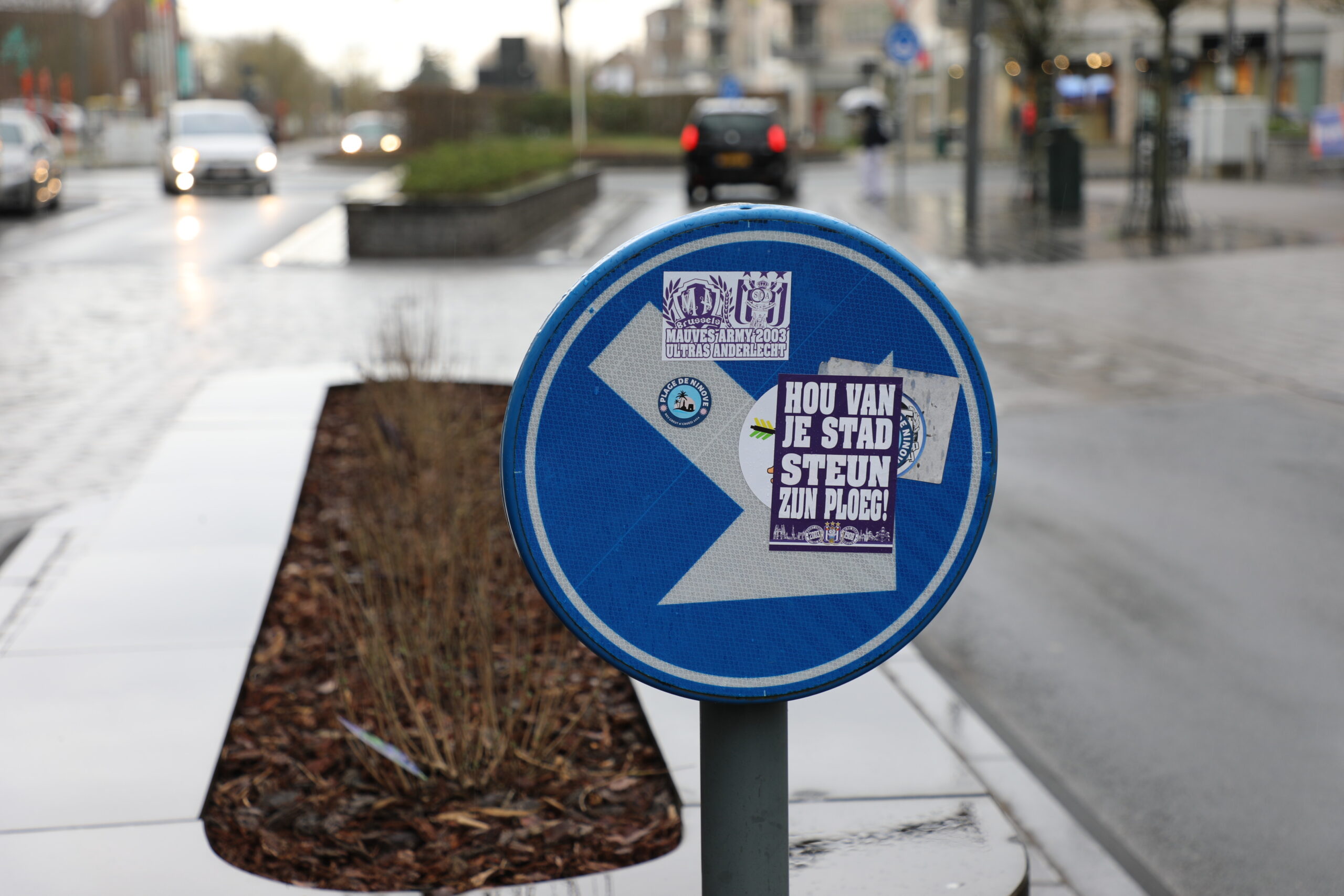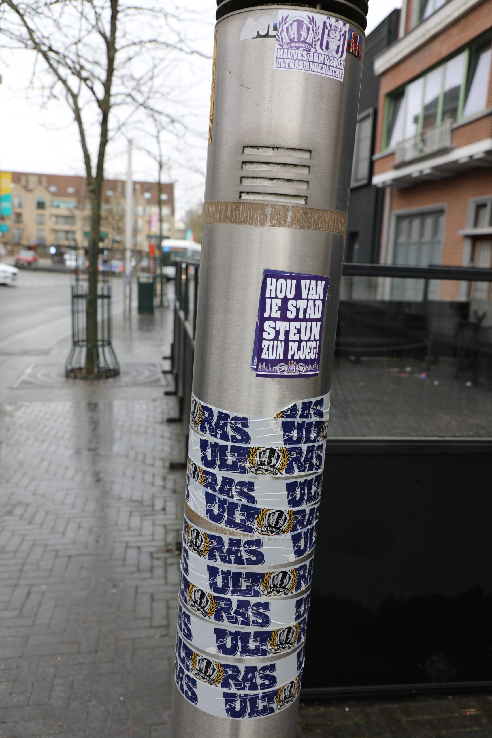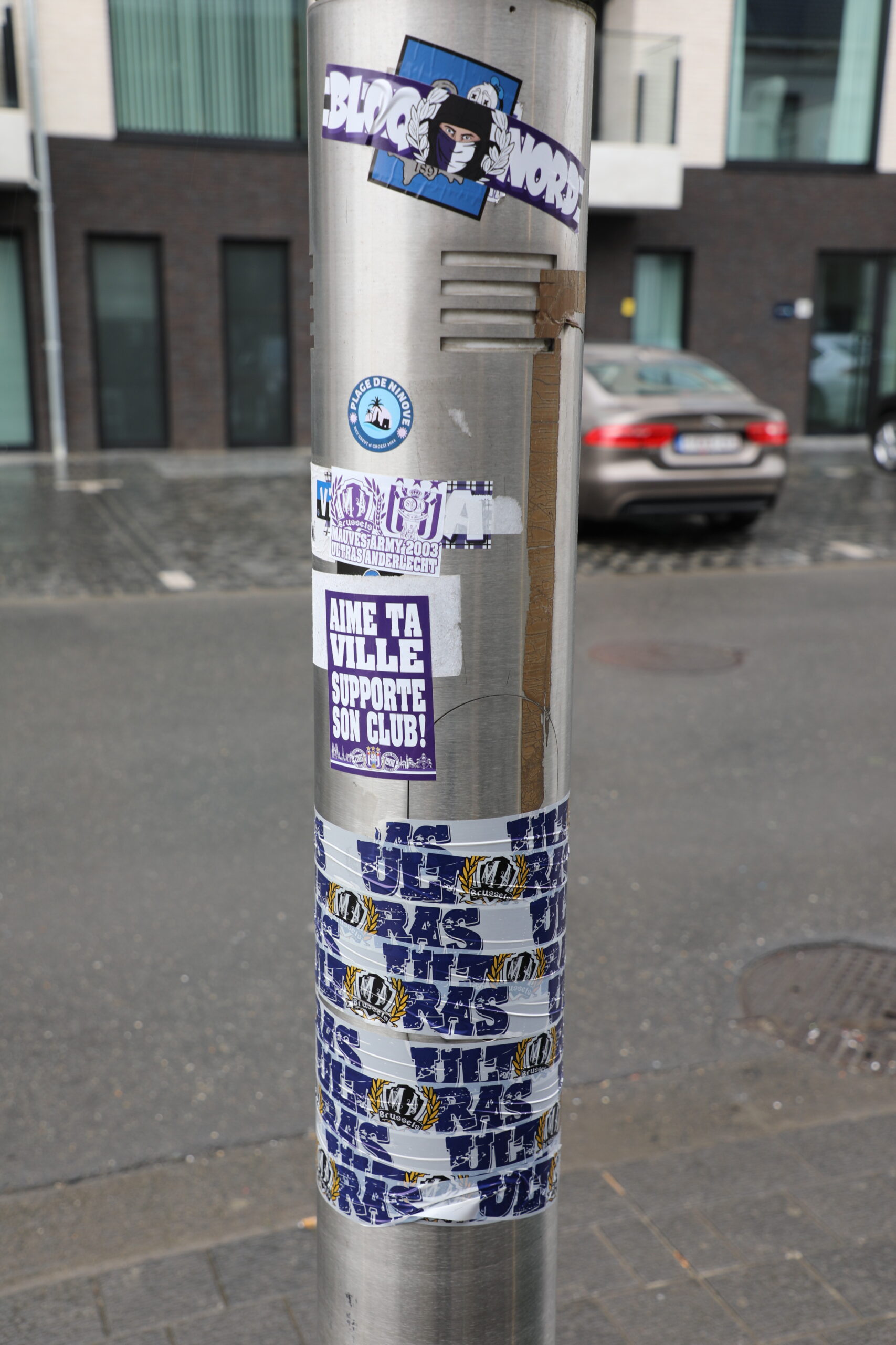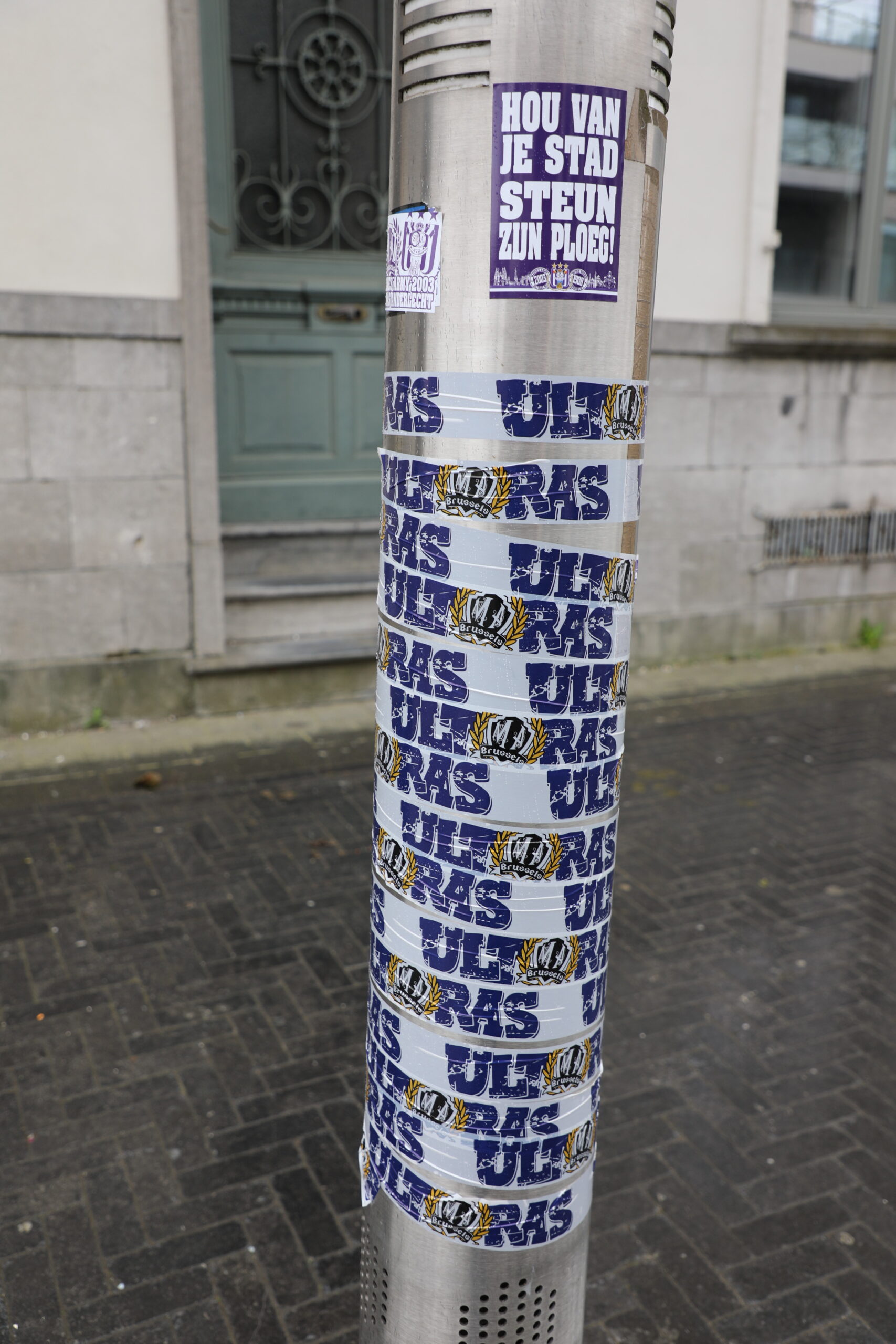 Ook langs de Centrumlaan en de Geraardsbergsestraat werden verkeersborden en verkeersspiegels beplakt met zowel Nederlandstalige als Engelstalige stickers waarin wordt opgeroepen om de Brusselse club te steunen.