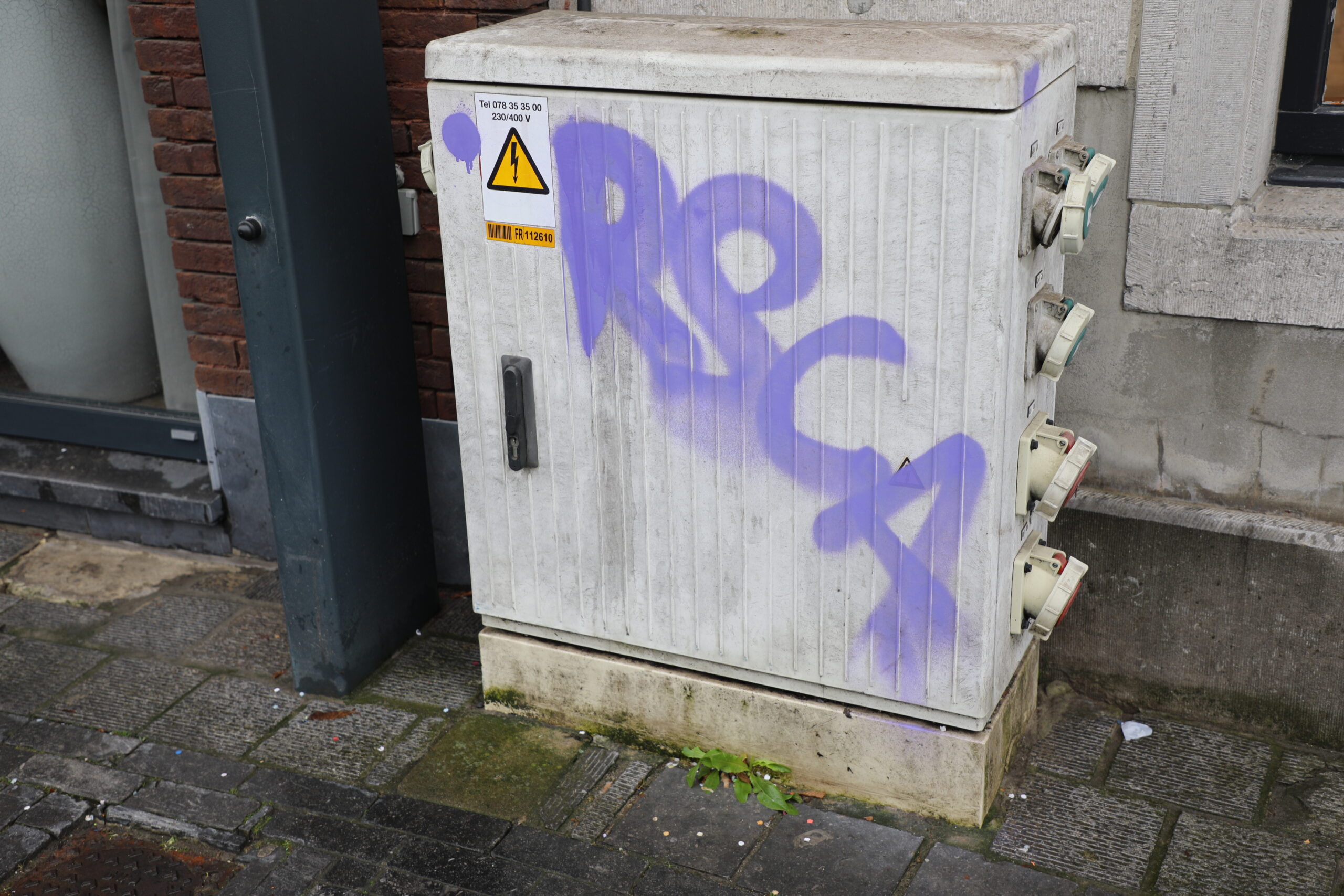 Op de palen van de sierverlichting werd door vandalen bijna niet-verwijderbare plakband aangebracht van de Anderlecht Ultra’s, een groep met duidelijke sympathieën voor voetbalclub Anderlecht. Elektriciteitskasten werden eveneens bespoten met graffiti.