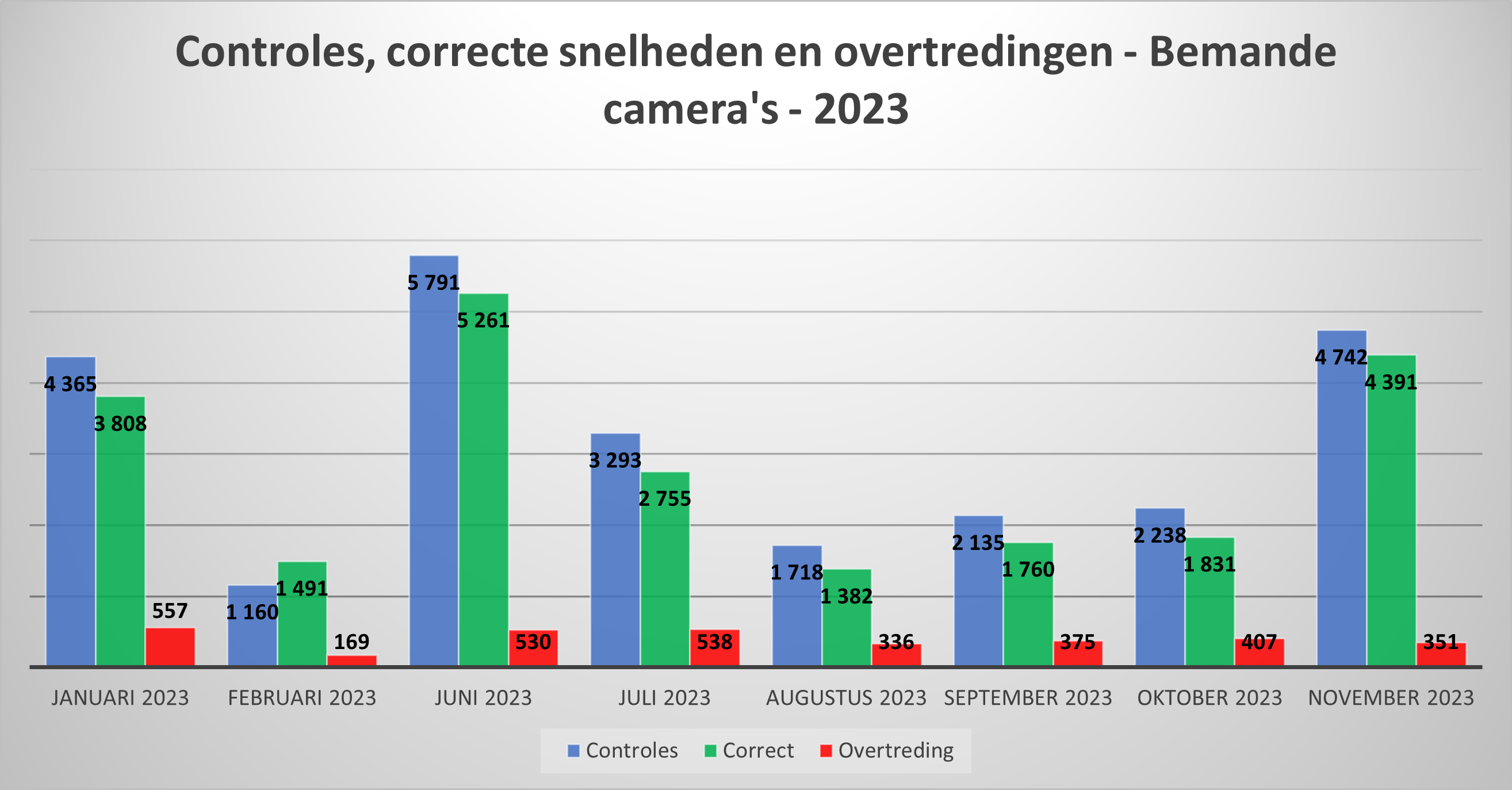 Tijdens de snelheidsmetingen met de bemande camera zijn 4.742 voertuigen gecontroleerd. Daarbij hielden 4.391 chauffeurs (92,60 %) zich aan de toegelaten snelheid.