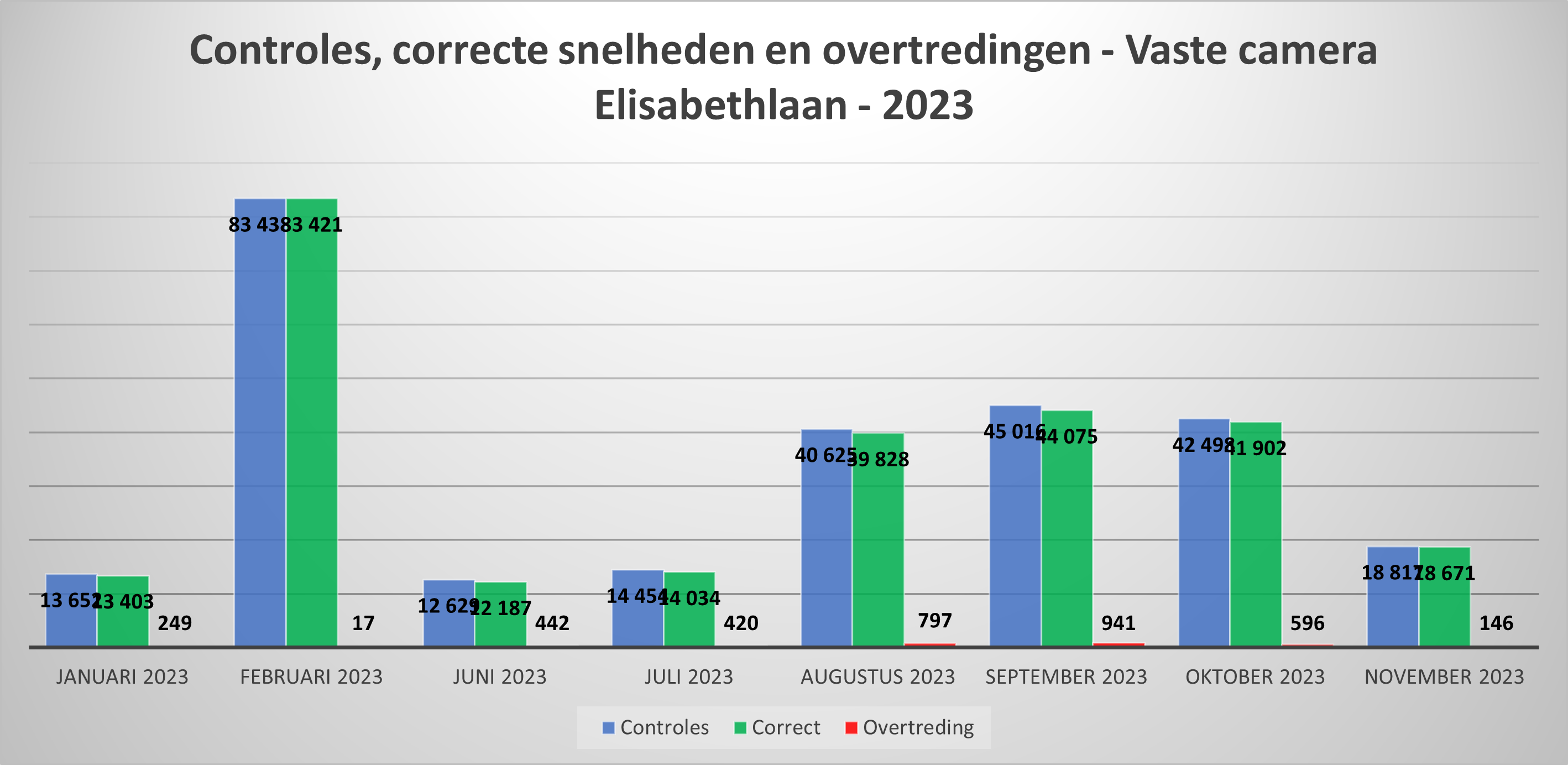 Aan de vaste flitsinstallatie langs de Elisabethlaan passeerden vorige maand 18.817 voertuigen. Daar lag het aantal overtredingen op amper 146 (0,78 %).