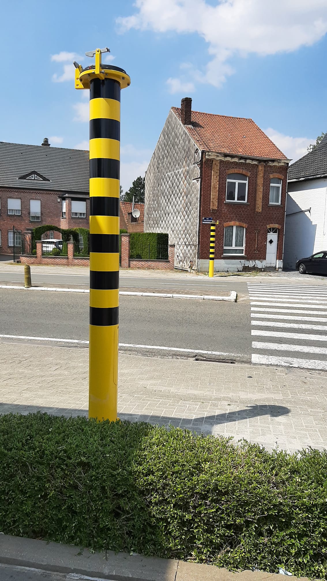 Dergelijke accentverlichting vind je ook elders, bijvoorbeeld op de Elisabethlaan en de Albertlaan. In Meerbeke staan inmiddels twee geel-zwarte zuilen opgesteld langs de beide kanten van de Brusselsesteenweg/N8, aan het zebrapad ter hoogte van de Herremansstraat.