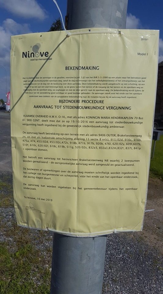 De aanvraag ligt ter inzage bij het Ninoofs gemeentebestuur. Bezwaren en/of opmerkingen kun je schriftelijk indienen bij het college van burgemeester en schepenen van Ninove voor het einde van het onderzoek dat 30 dagen duurt.