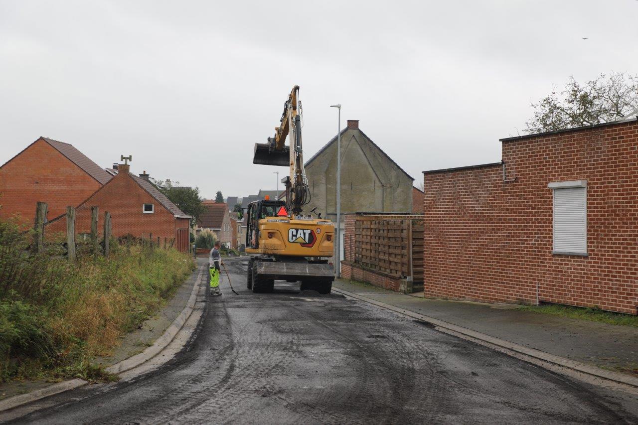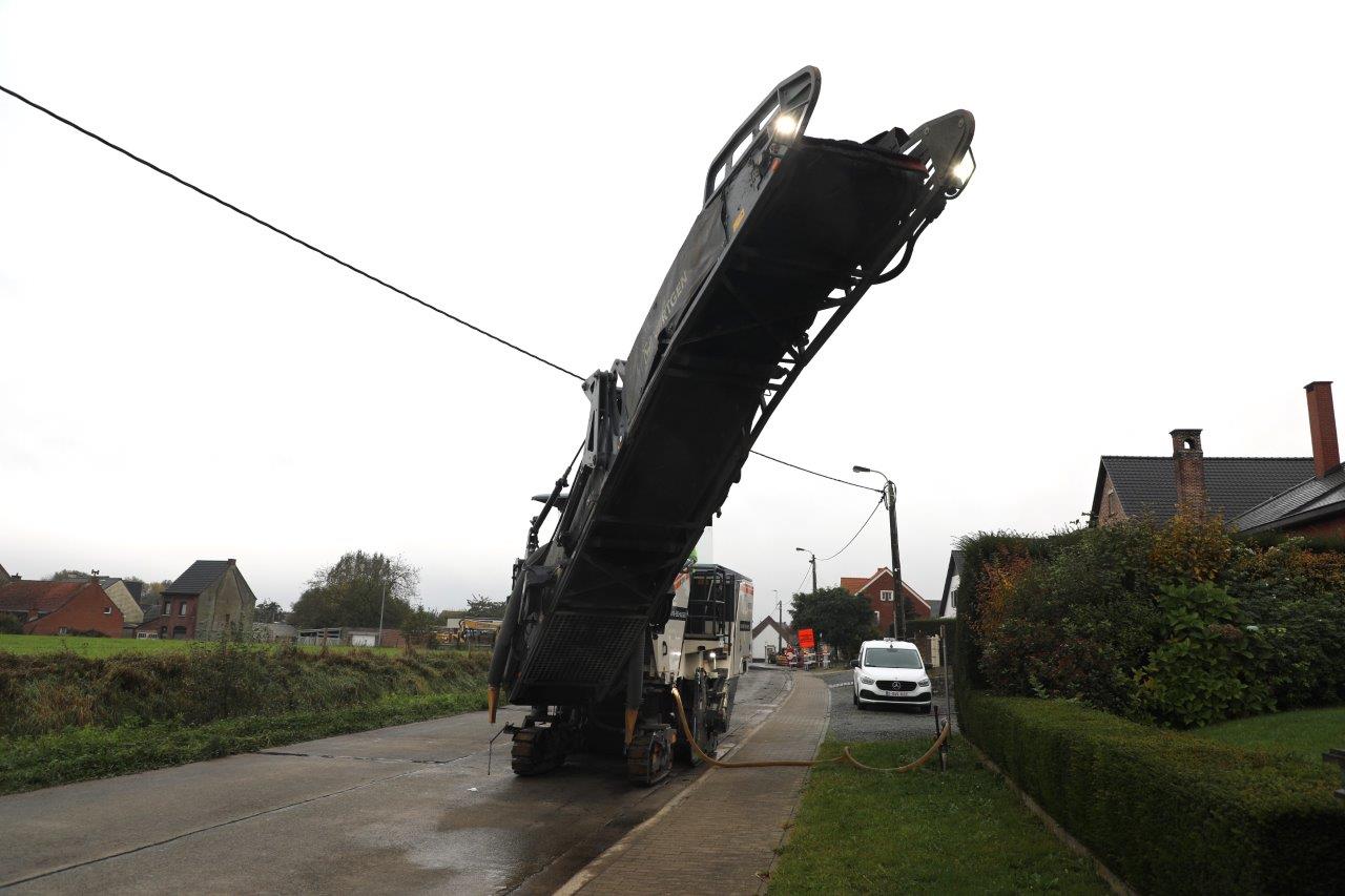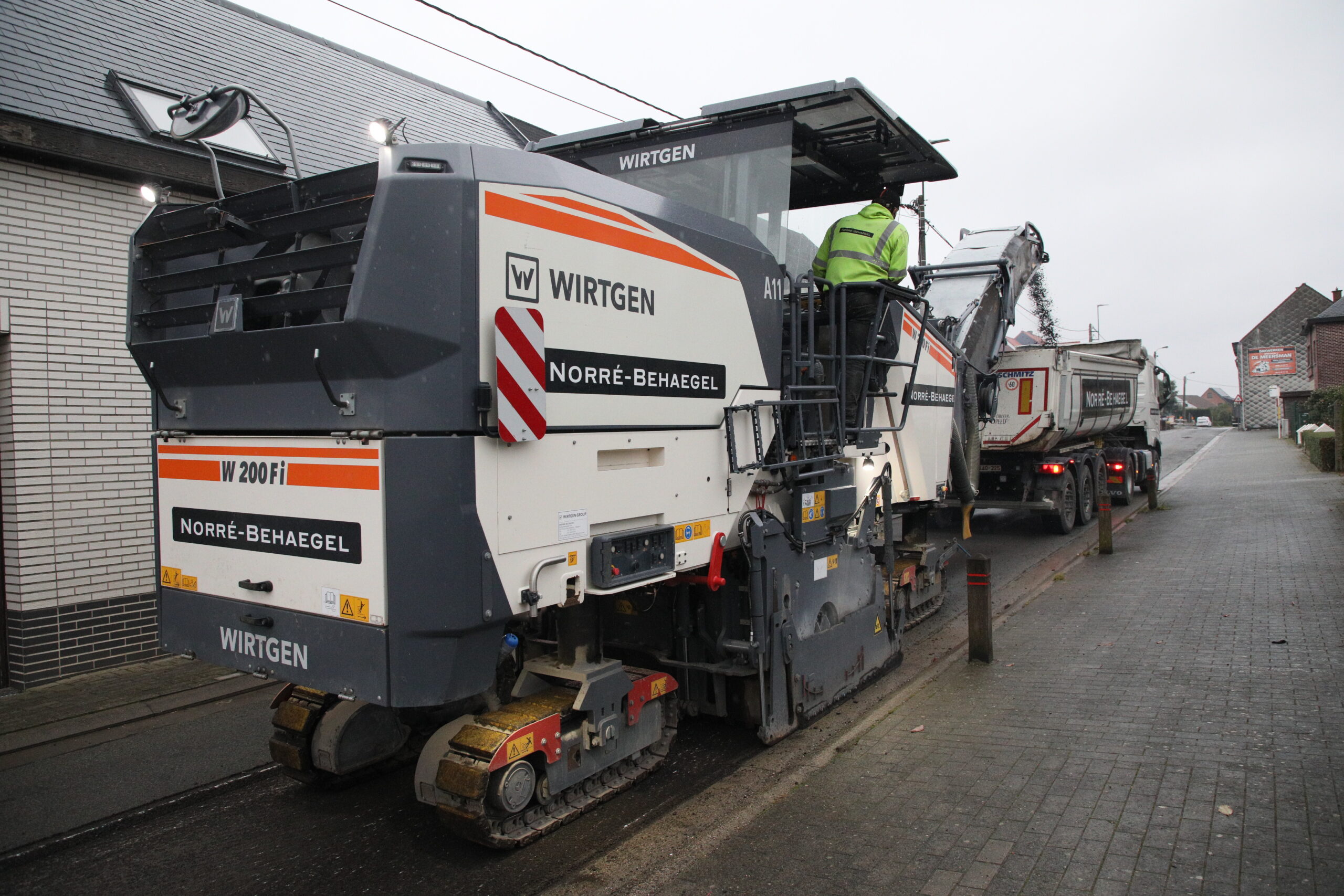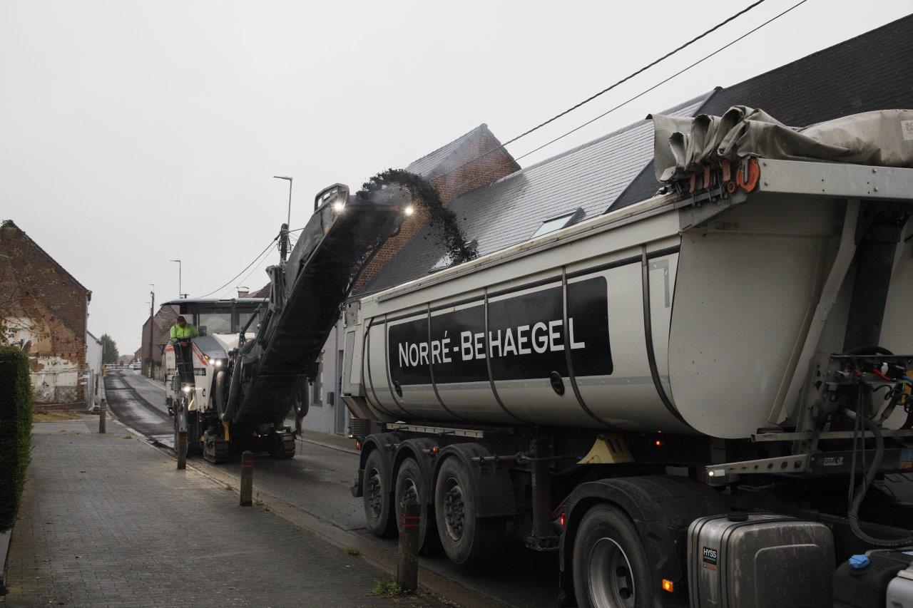 De firma Norré-Behaegel is inmiddels begonnen met het affrezen van de oude asfaltlaag. De komende dagen gieten ze een nieuw eindlaag in asfalt. Tegelijk worden de rioleringsdeksels in de straat vernieuwd.