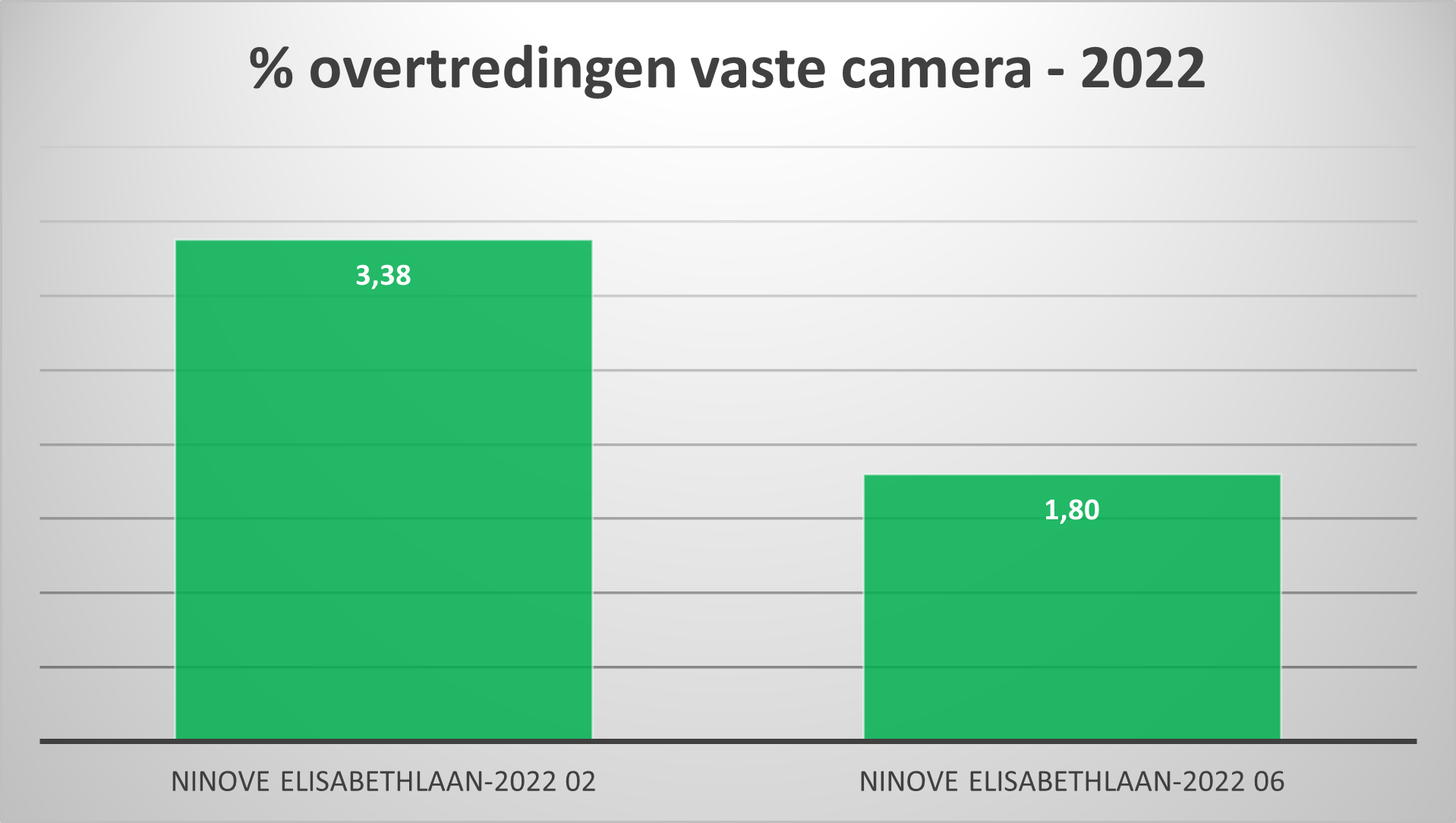Langs de vaste camera aan de Elisabethlaan-Oude Eichembaan reden in juni 5.662 voertuigen voorbij: 5.560 (98,20 %) aan de correcte snelheid, 102 chauffeurs (1,80 %) reden te rap.