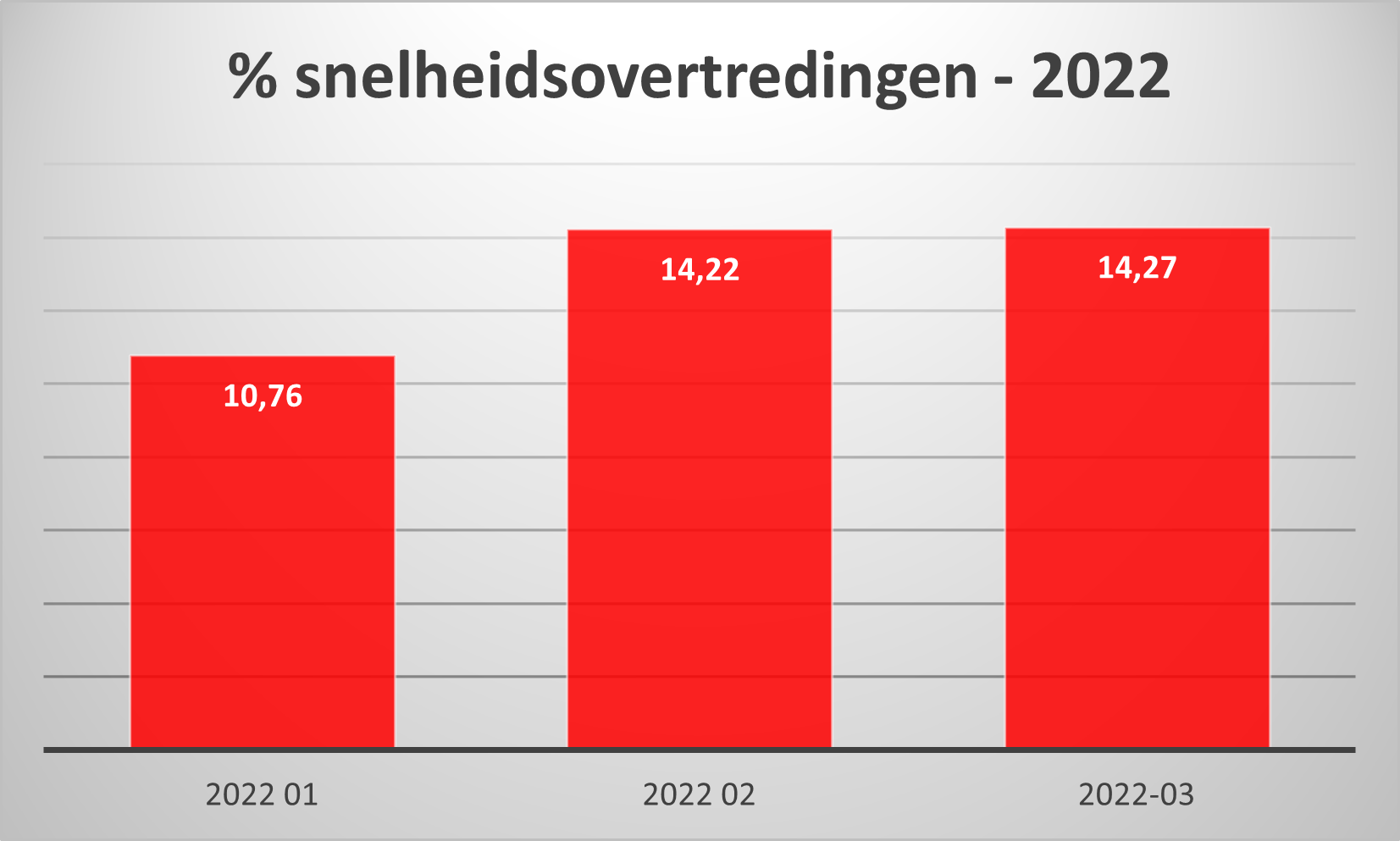 In totaal passeerden 4. 506 voertuigen de bemande controleposten. 3.866 (85,80 %) hielden zich aan de toegelaten snelheid. 643 chauffeurs (14,27 %) reden te snel.