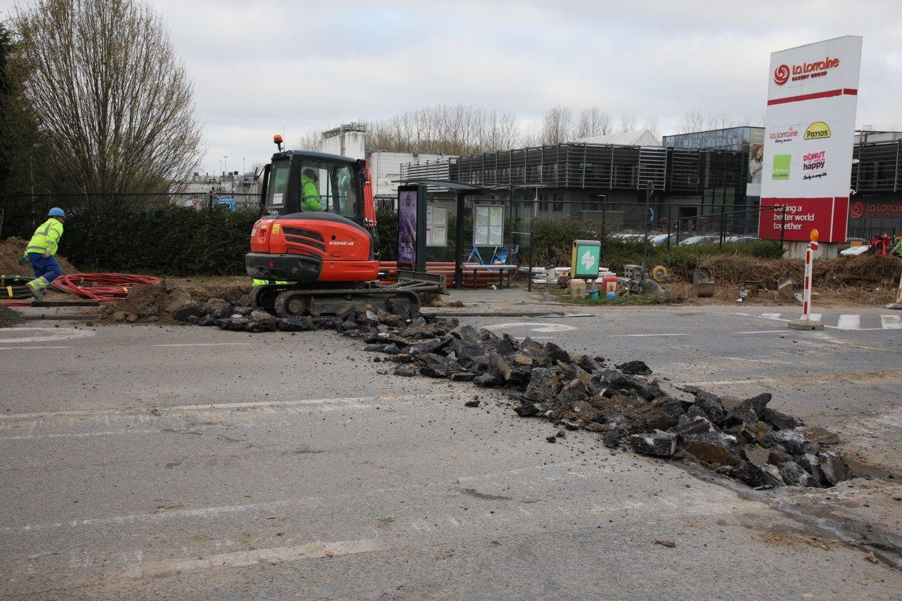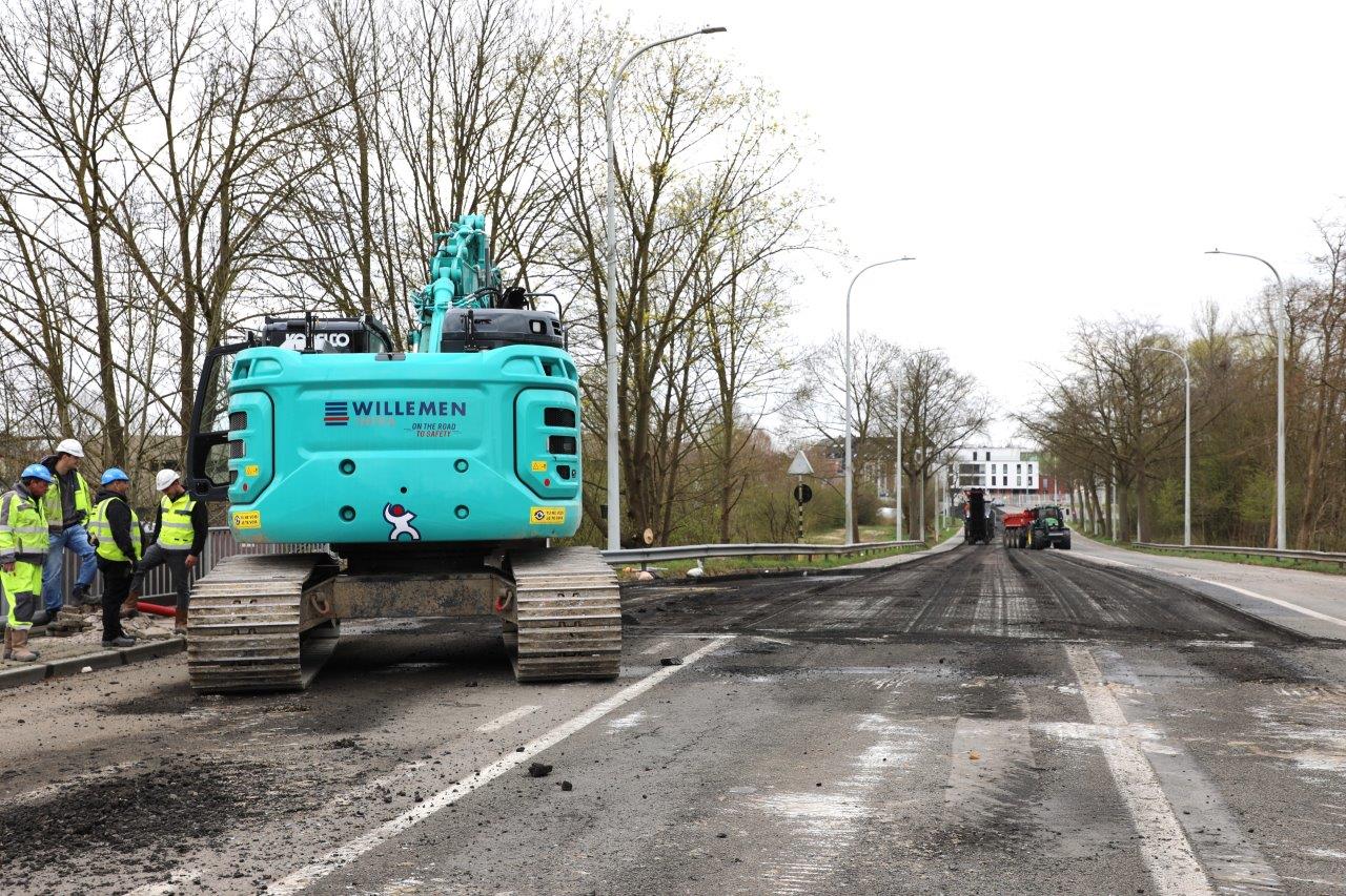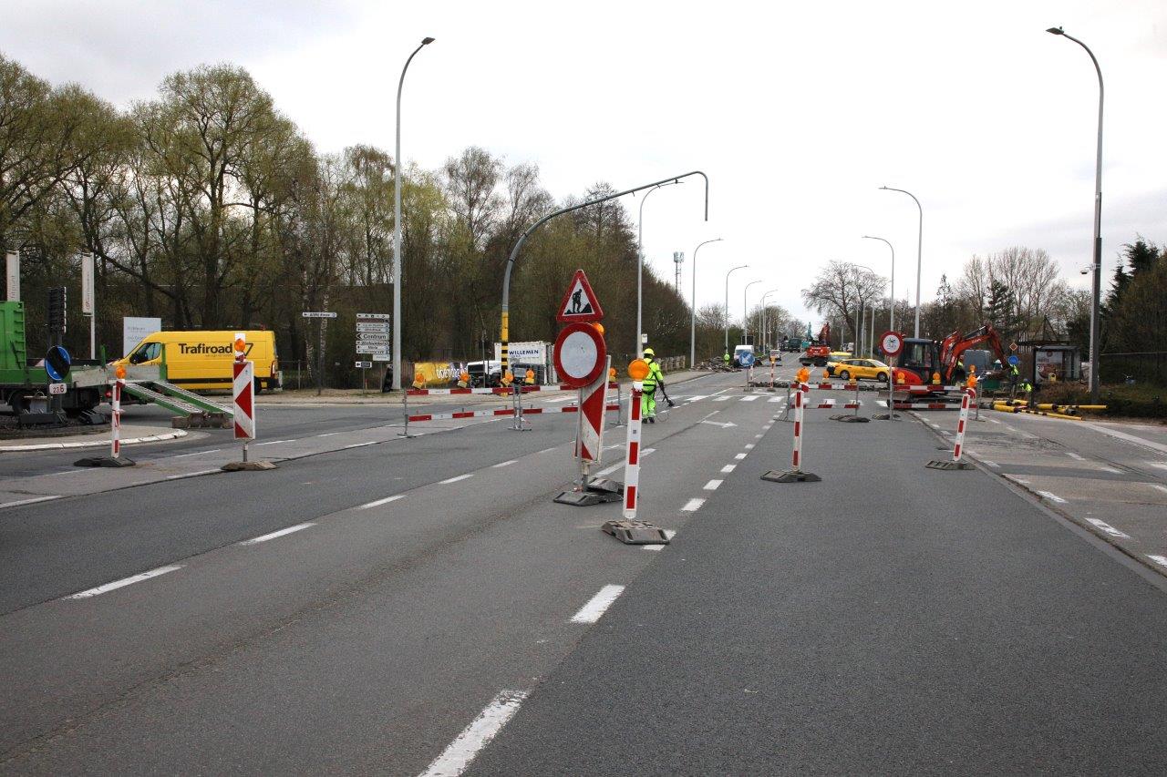 Maandagochtend zijn verschillende firma’s begonnen met onder meer het verwijderen van de verkeerslichten aan het kruispunt La Lorraine en het graven van proefsleuven. Gespecialiseerde machines schrapen de asfaltlaag af.