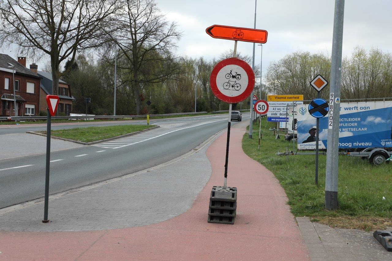 - Fietsers moeten in de beide richtingen omrijden via de stadswegen.