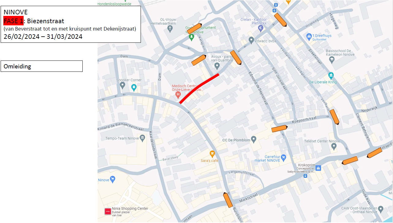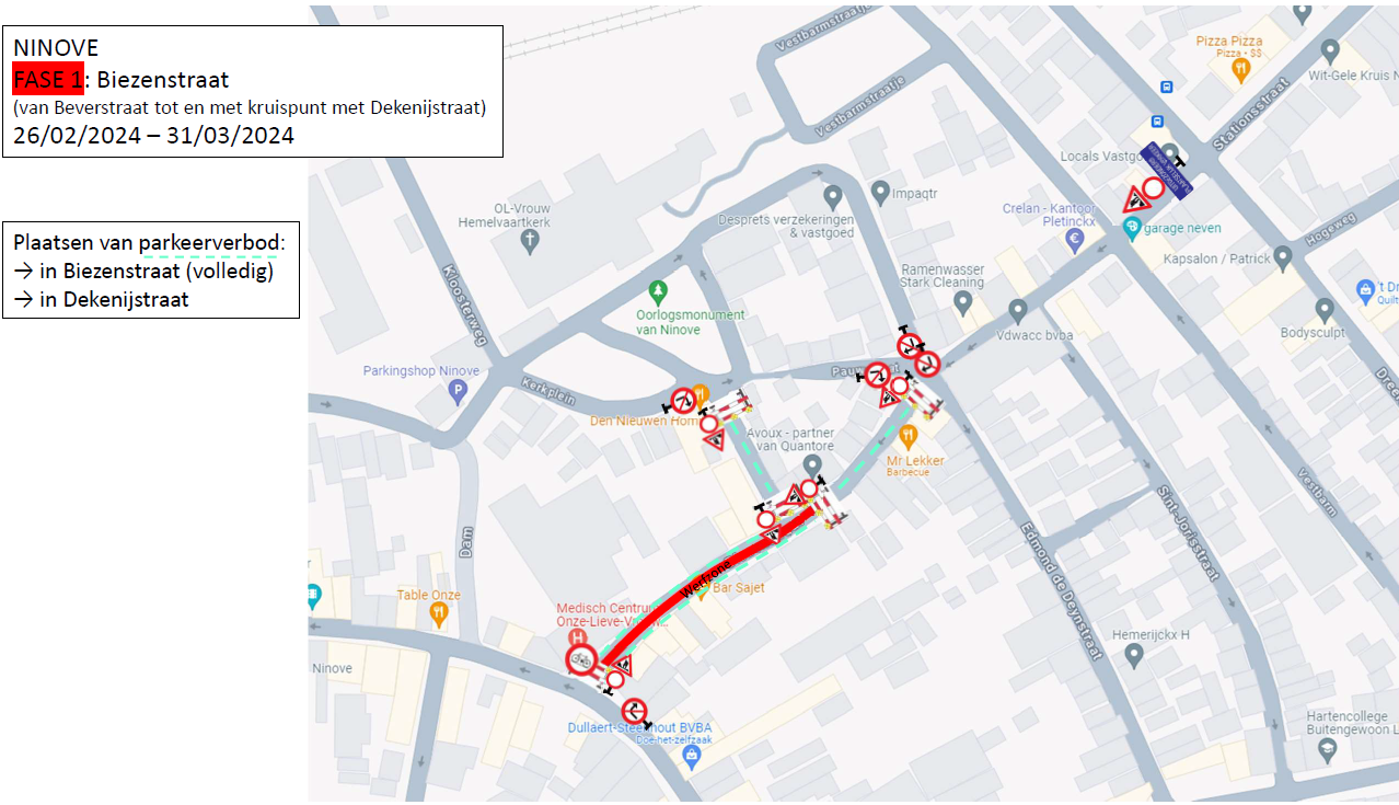 NINOVE – De eerste fase van de werken is maandag 26 februari gestart in de Biezenstraat.