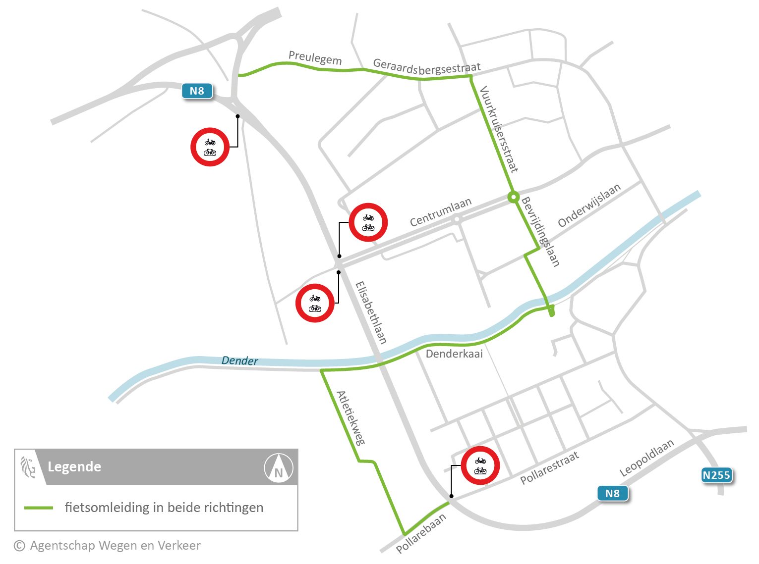 - Fietsers zullen tijdens die periode een omleiding moeten volgen (zie kaartje onderaan).