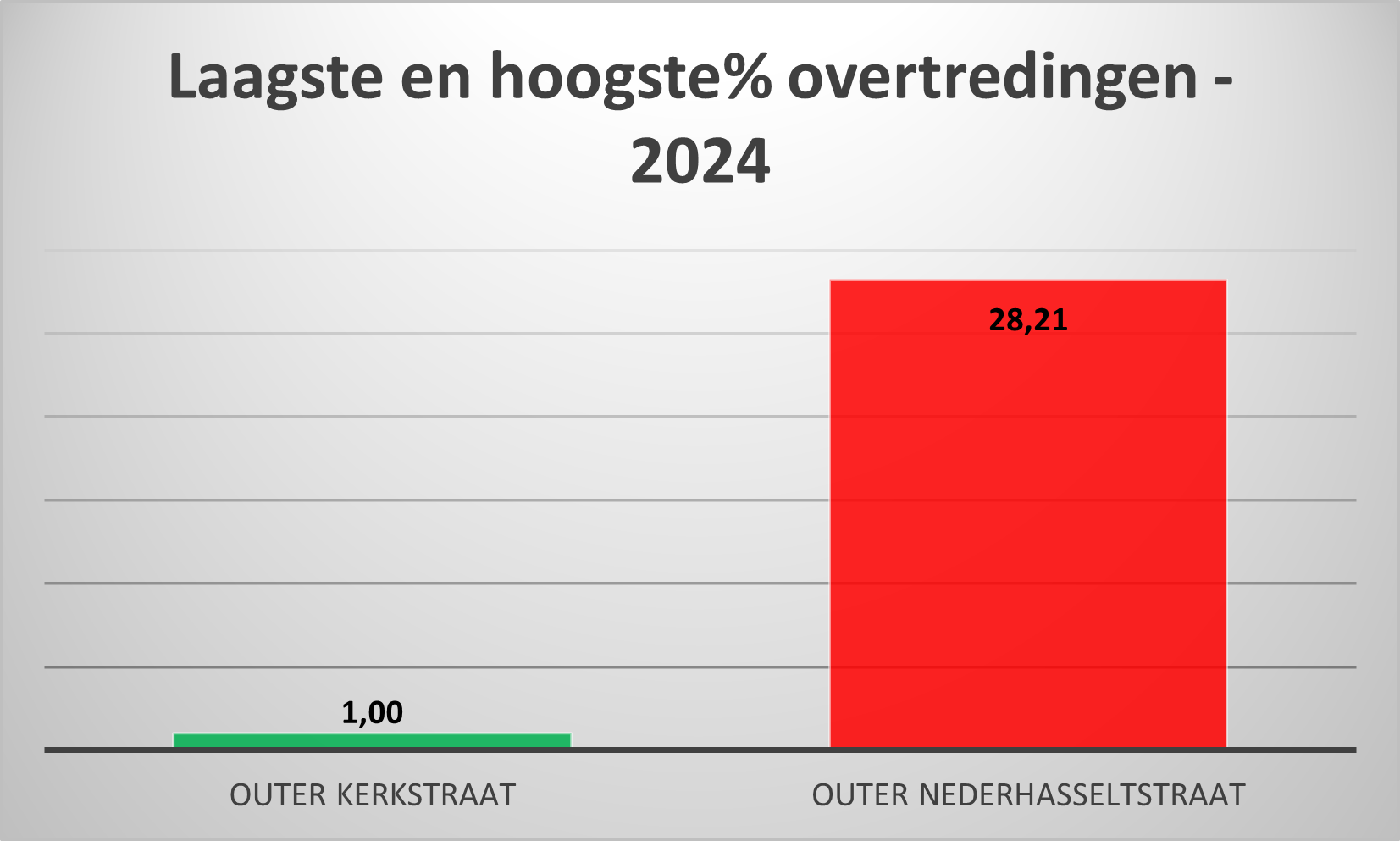 Hoogste percentage snelheidsovertredingen in Nederhasseltstraat (Outer)