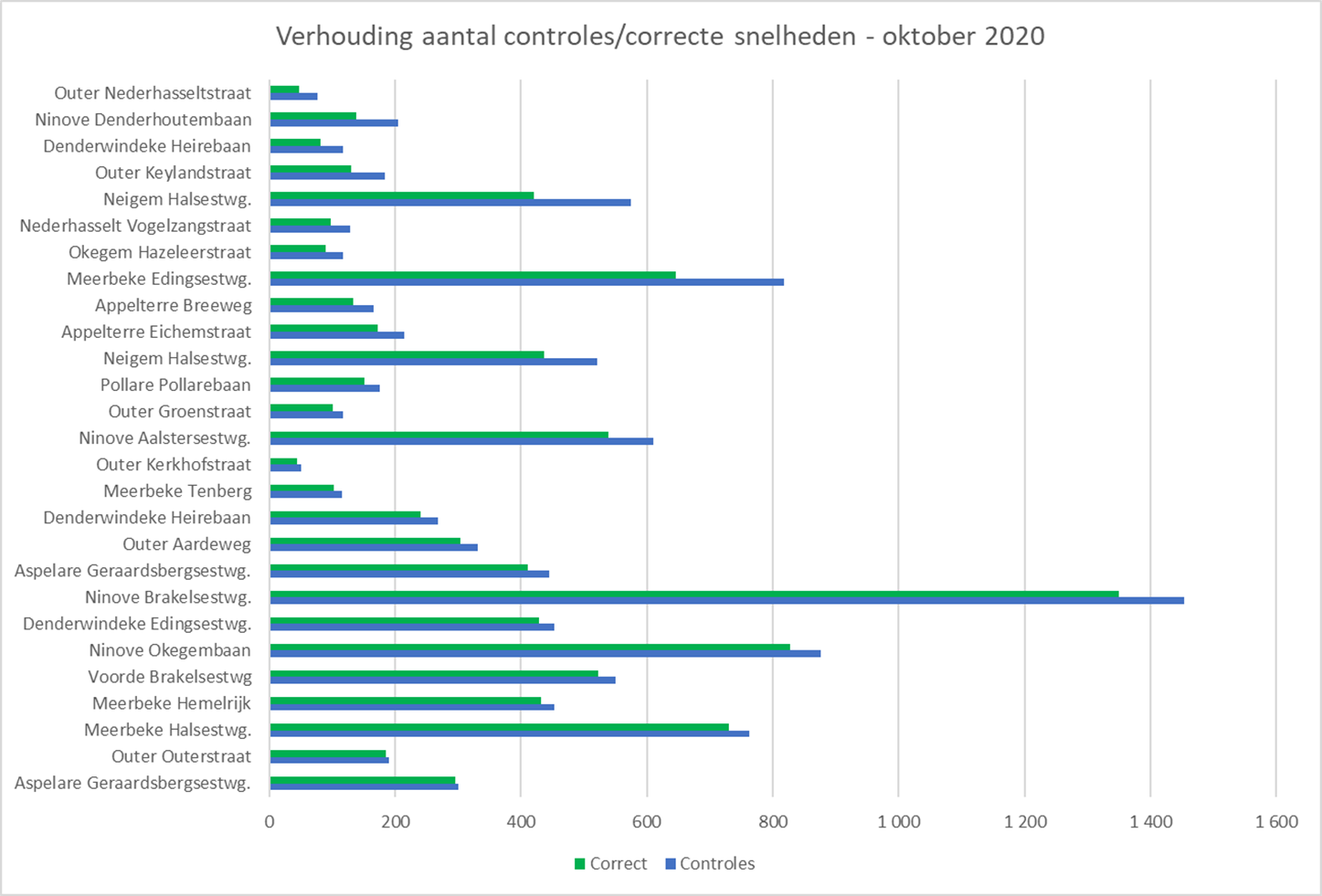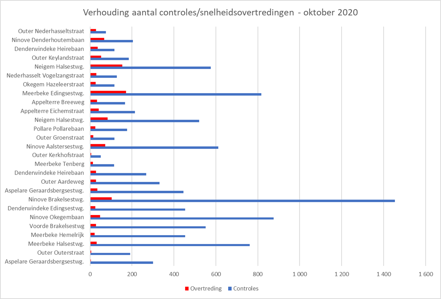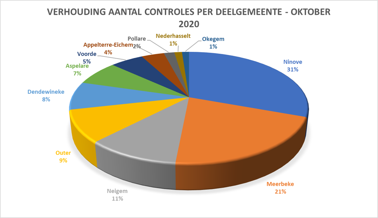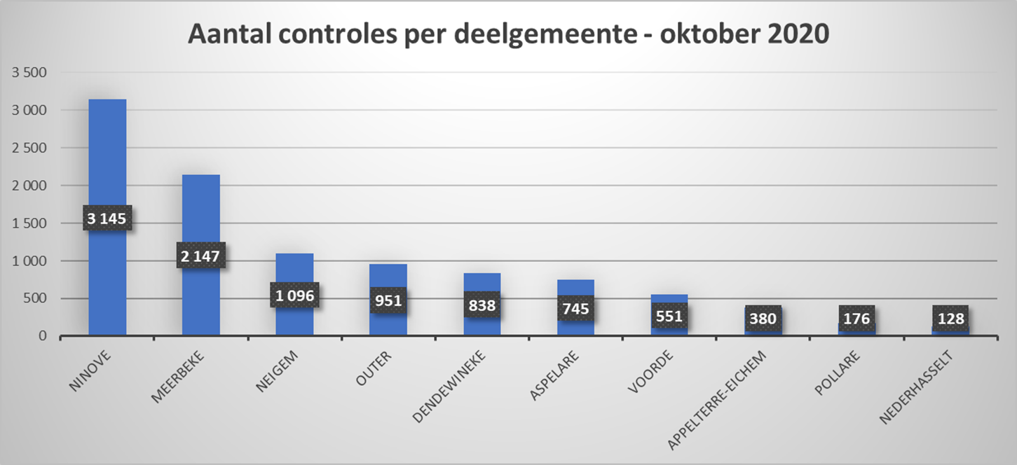De meeste controles vonden plaats in Ninove (3.145), Meerbeke (2.147) en Neigem (1.096). De minste gebeurden in Okegem (117), Nederhasselt (128) en Pollare (176).