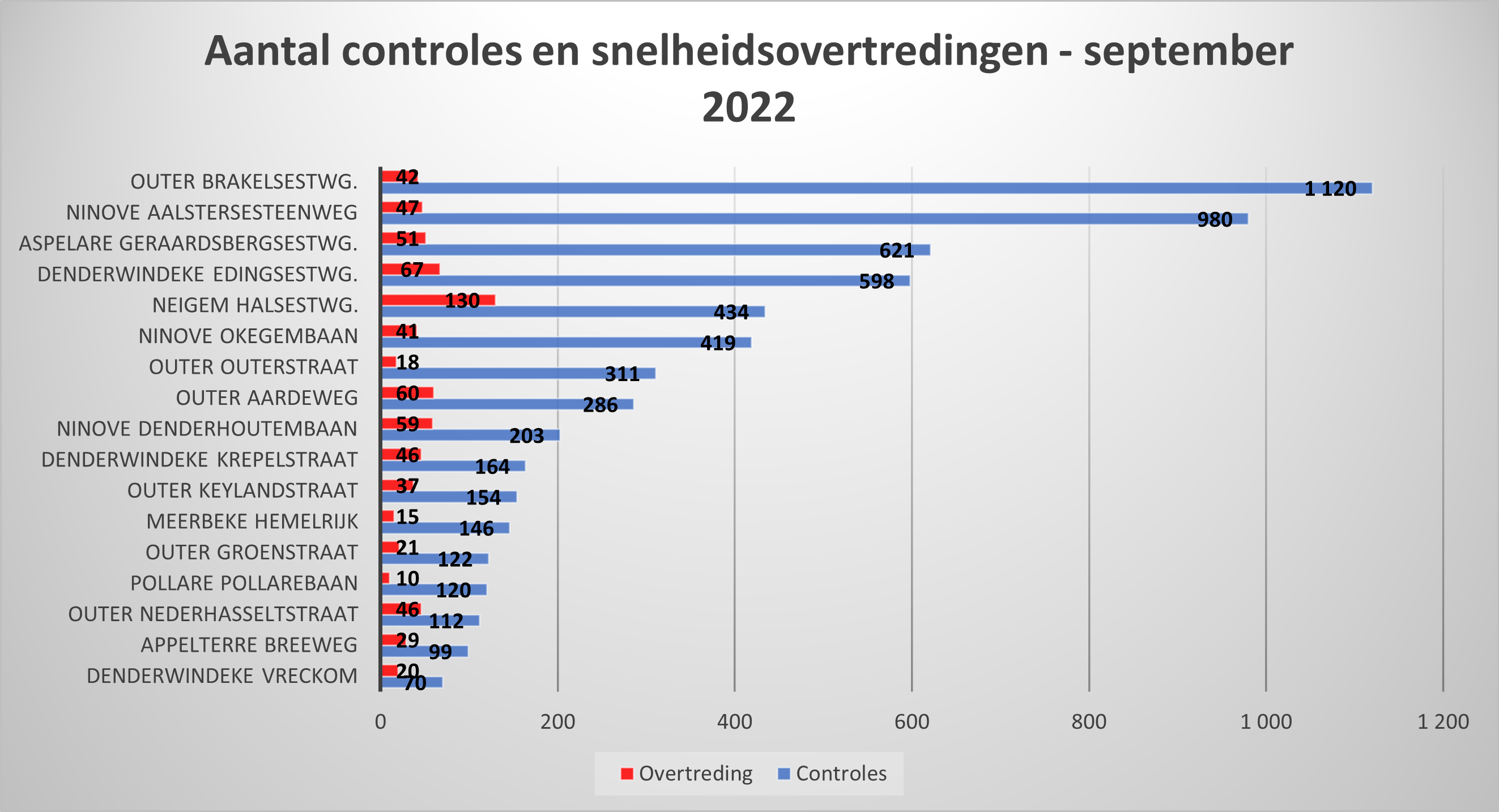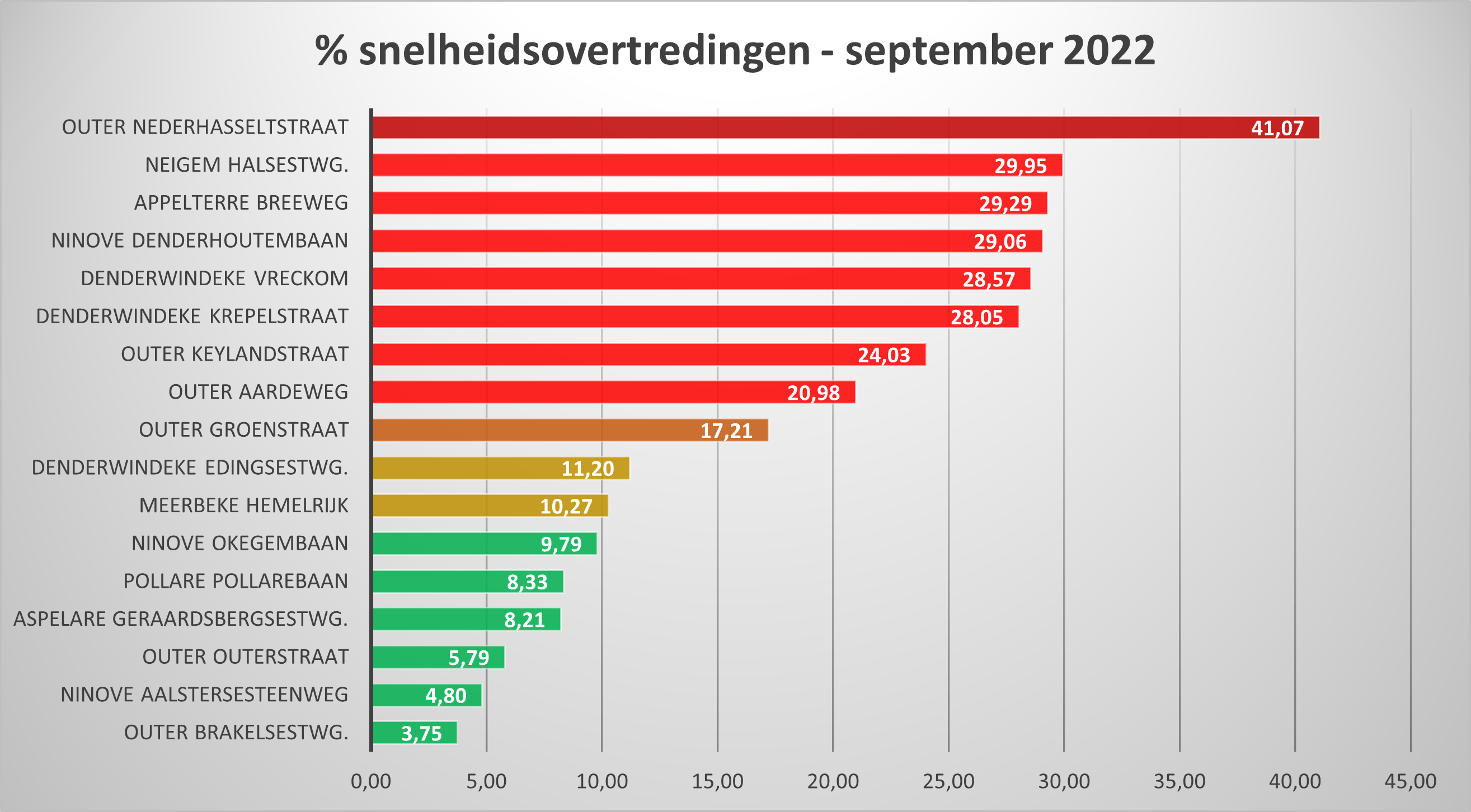 NINOVE – In het overzicht van de snelheidscontroles van september 2022 liet de Nederhasseltstraat in Outer terug (net als in juni) het hoogste percentage snelheidsovertredingen noteren: 41,09 %.