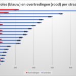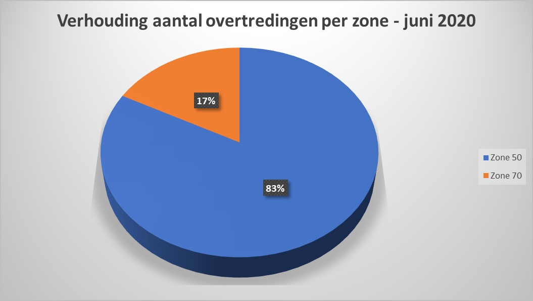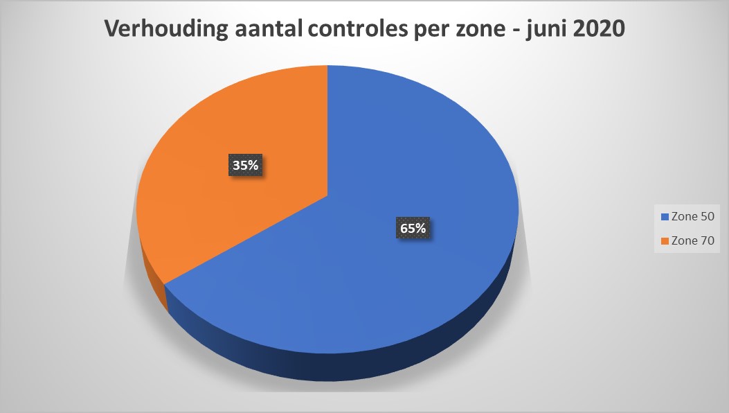 Het grootste aantal controles en overtredingen vond plaats in de zones 50 (4.118 of 65 % – 772 of 83 %).