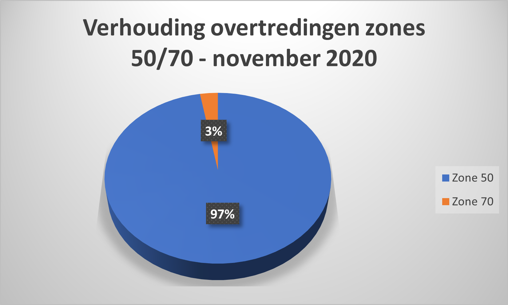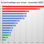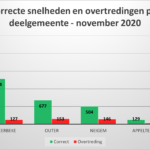De politie controleerde beduidend minder in november; daar zaten de corona-maatregelen voor iets tussen. In november hield 87,84 % van de gecontroleerde chauffeurs zich aan de maximale snelheden. Dat is net iets minder dan vorige maand.