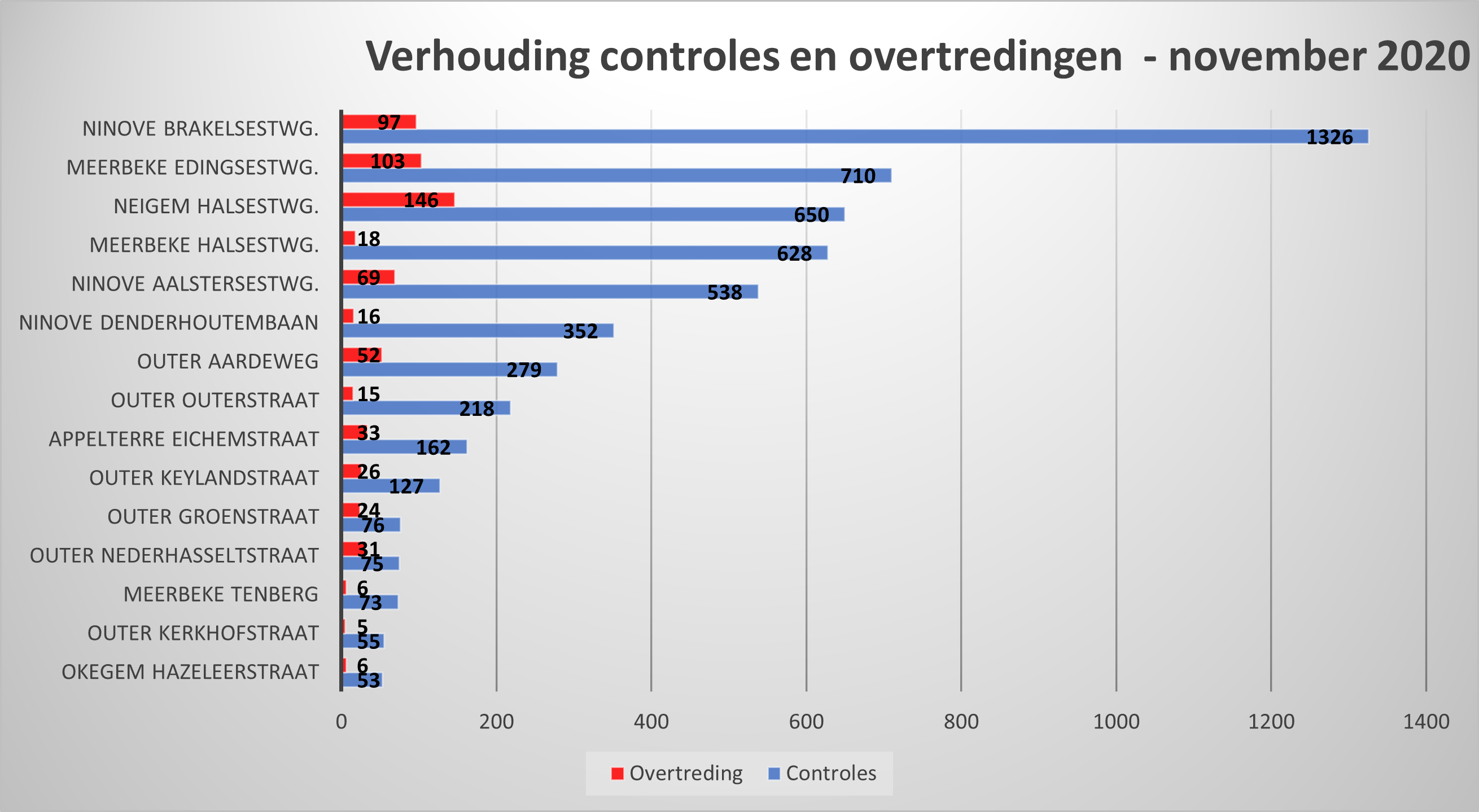 - In Aspelare, Denderwindeke, Lieferinge, Nederhasselt en Voorde ware in november geen snelheidscontroles.