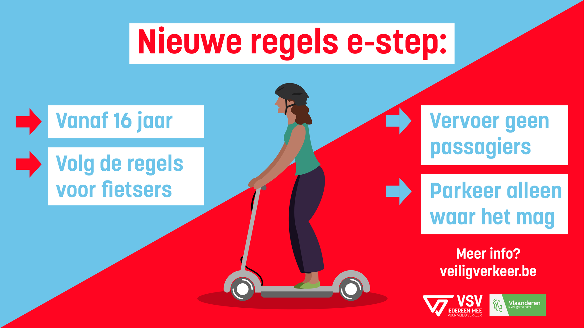 Concreet: je mag niet op het trottoir rijden, maar moet het fietspad volgen. Als er geen fietspad is, rij je op de weg. In voetgangerszones geven verkeersborden aan of fietsers (en dus ook elektrische steps) al of niet zijn toegelaten. Zo ja, dan moet je stapvoets rijden.