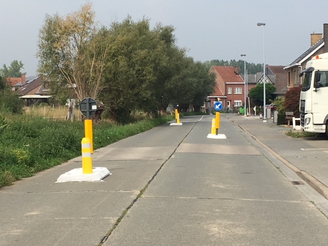 De snelheidsremmers laten langs de kanten een ruimte van een meter voor de fietsers. “Op die manier moeten zij deze chicane niet nemen en kunnen ze gewoon rechtdoor blijven rijden”, aldus de schepen. “We hebben ook veel werk gemaakt van de zichtbaarheid van deze snelheidsremmers door een fluo coating, witte reflectoren en duidelijke richtingaanwijzers.”