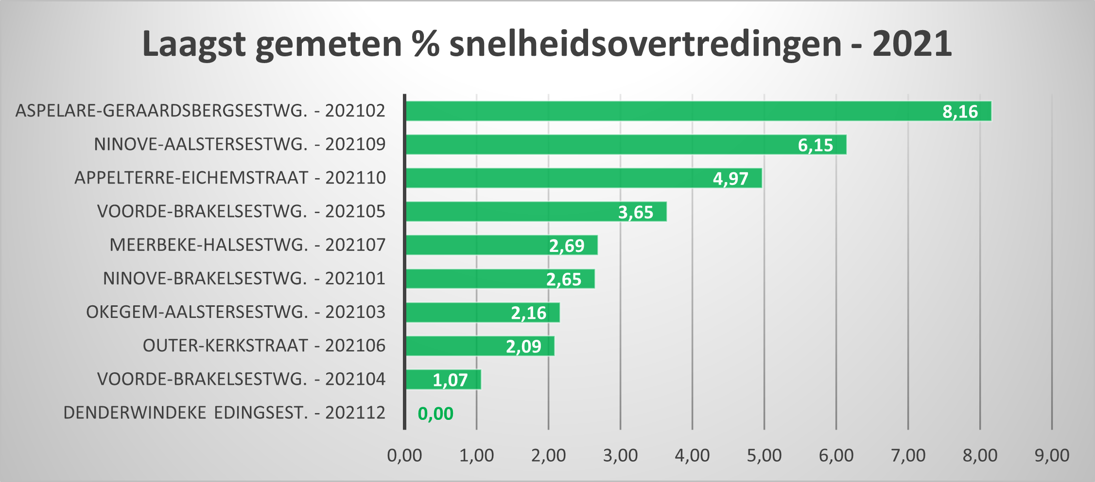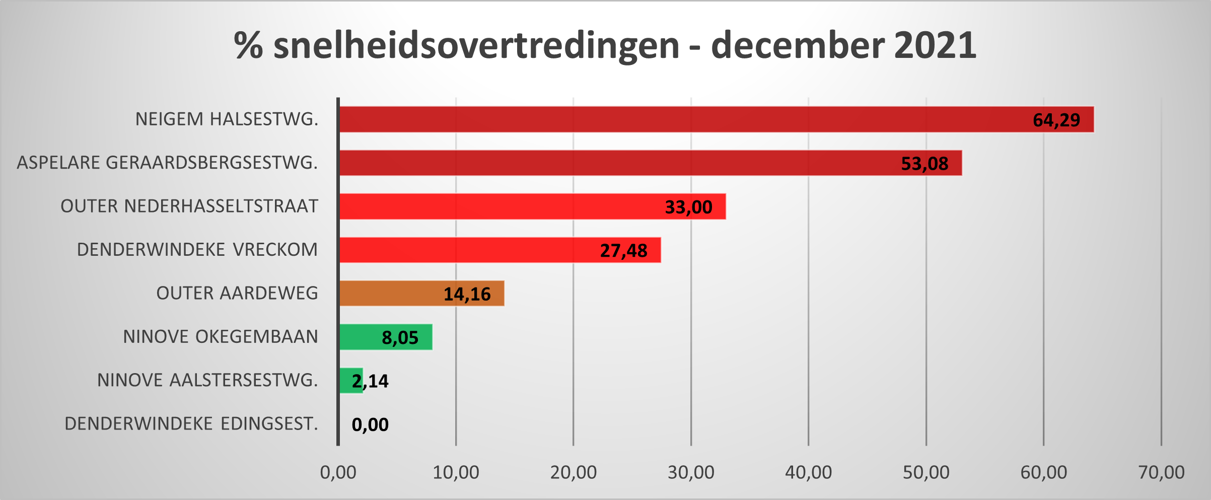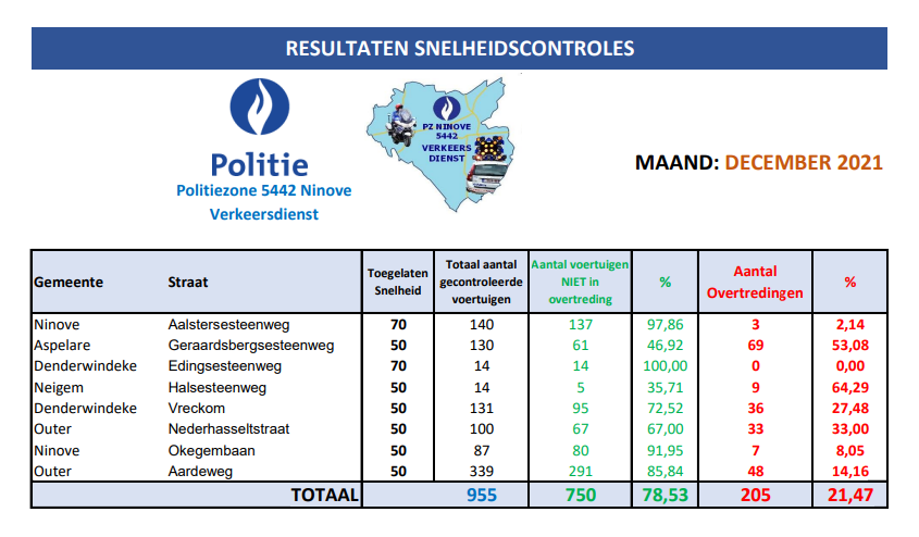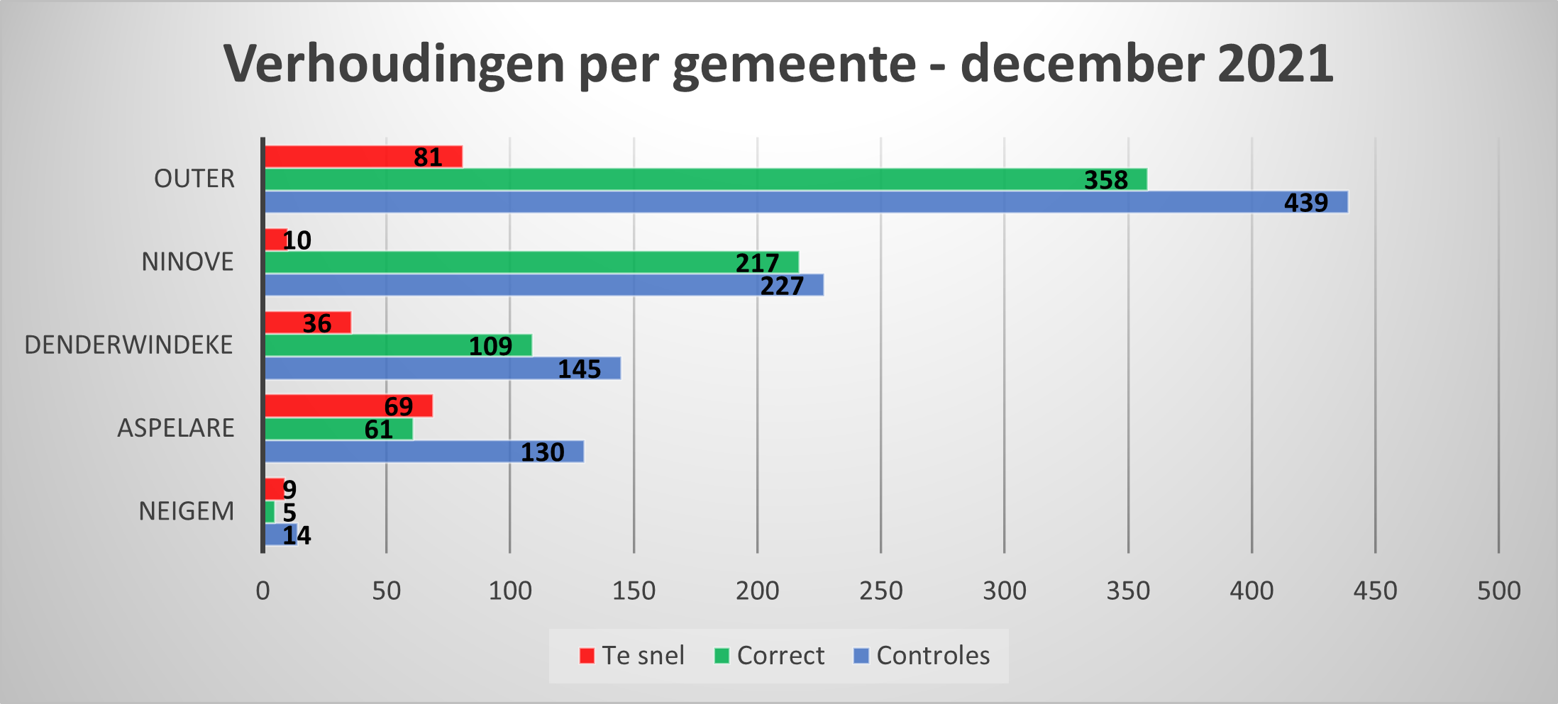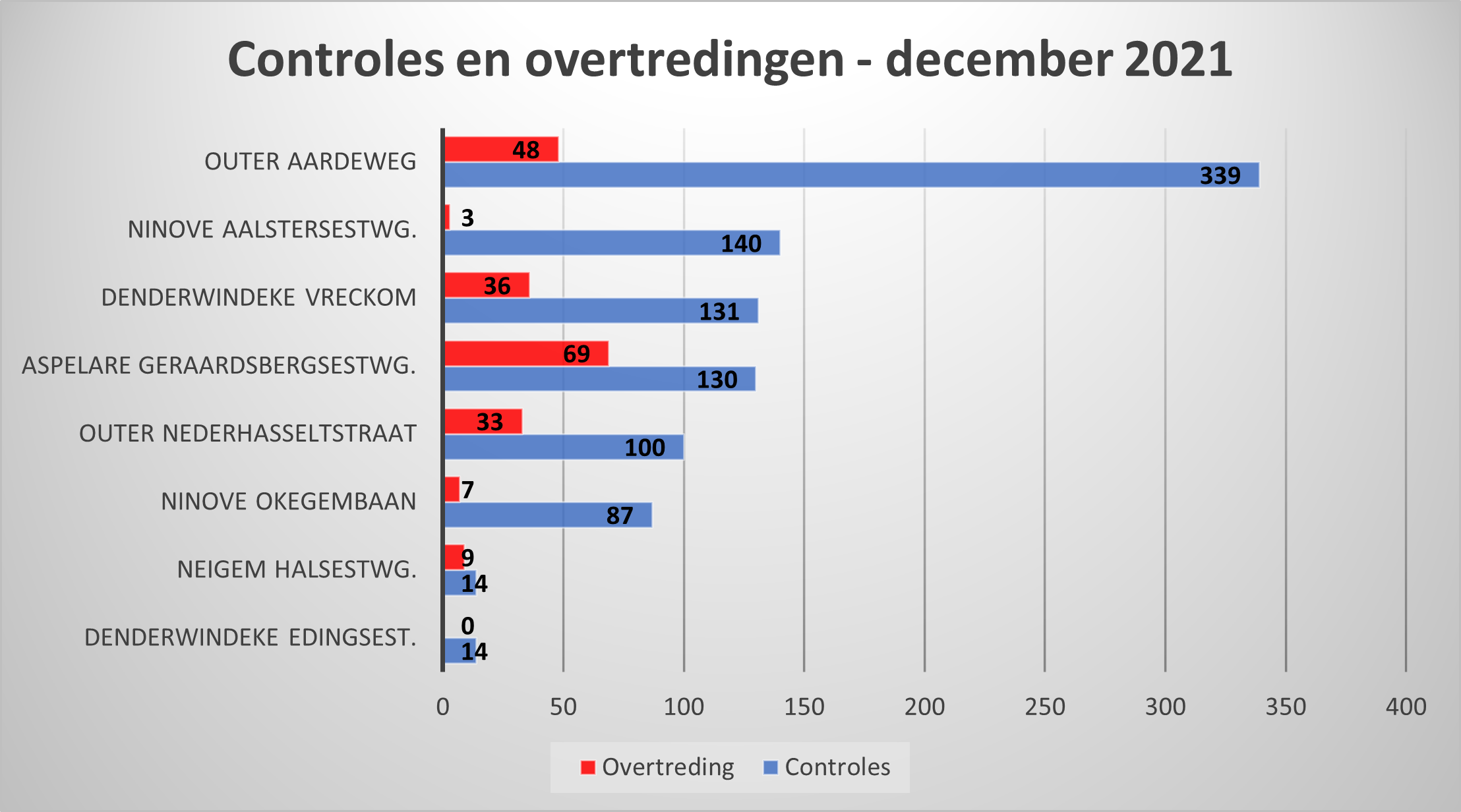 • In Appelterre-Eichem, Meerbeke, Nederhasselt, Lieferinge, Okegem, Pollare en Voorde hadden in december geen snelheidscontroles plaats.