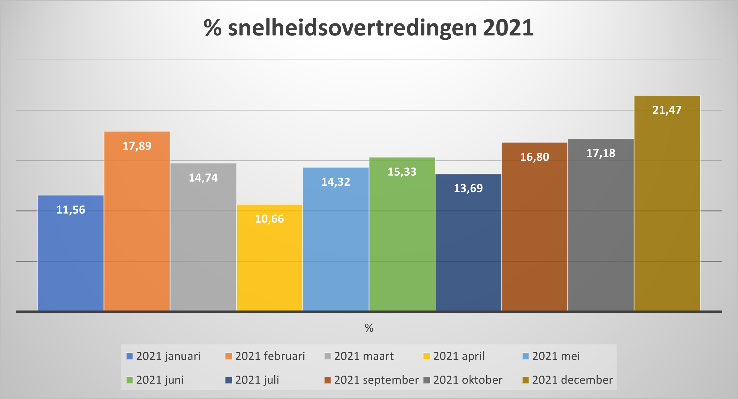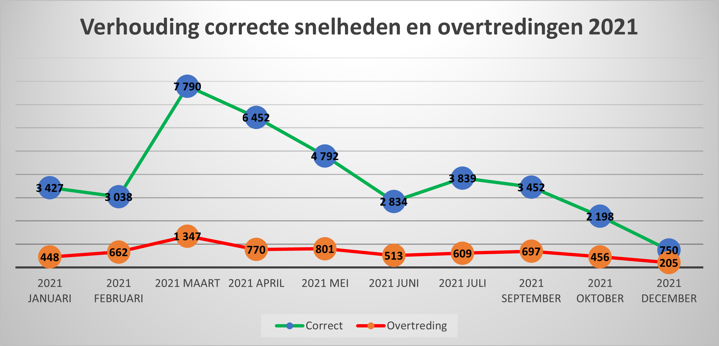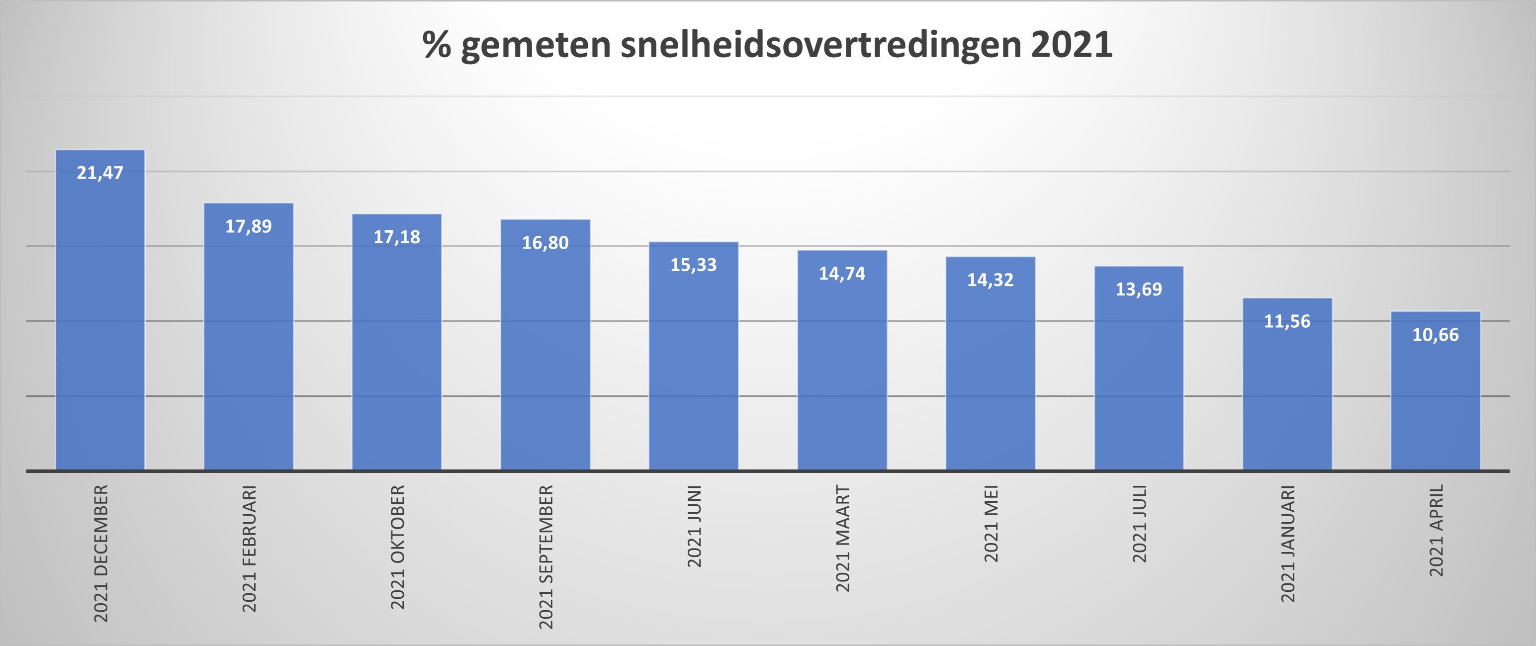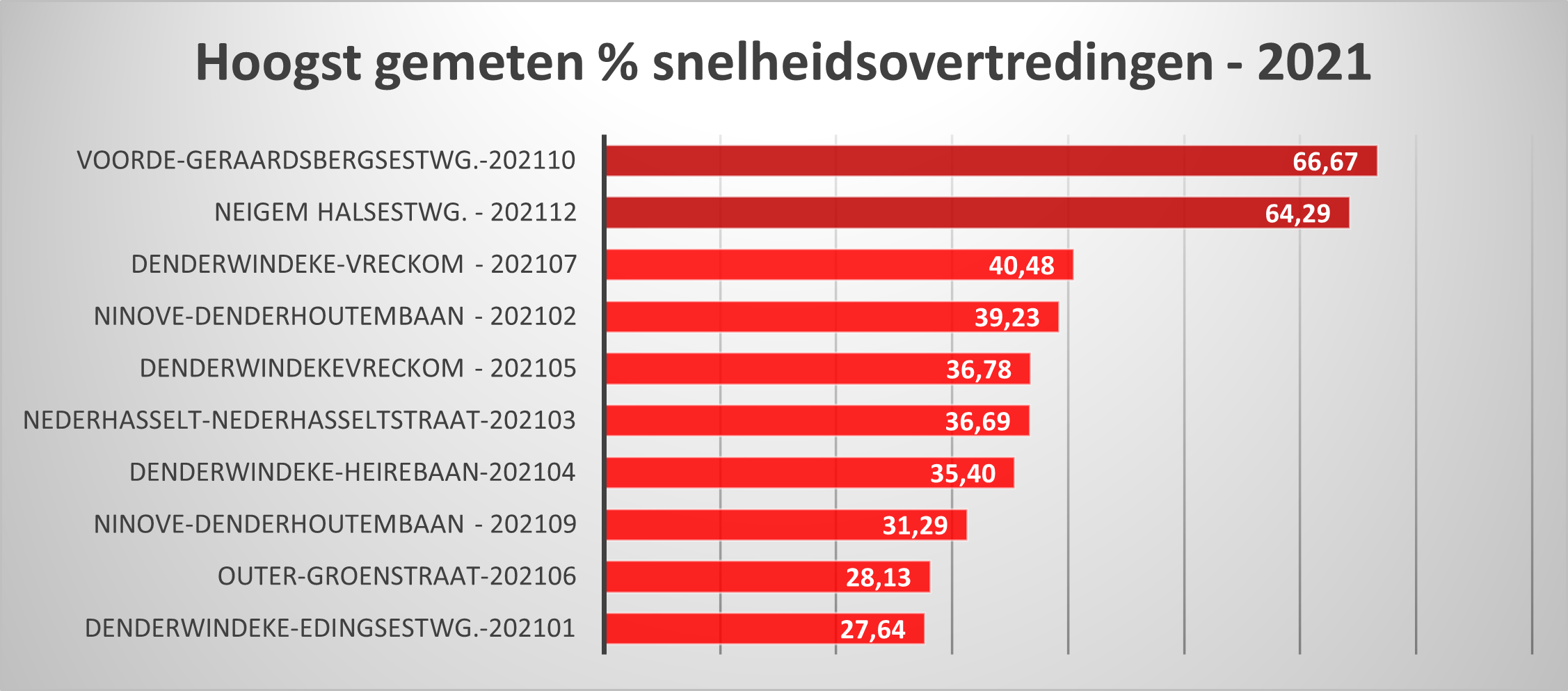 • Het hoogste percentage snelheidsovertredingen is opgetekend in oktober: 66,67 % in Voorde op de Geraardsbergsesteenweg.