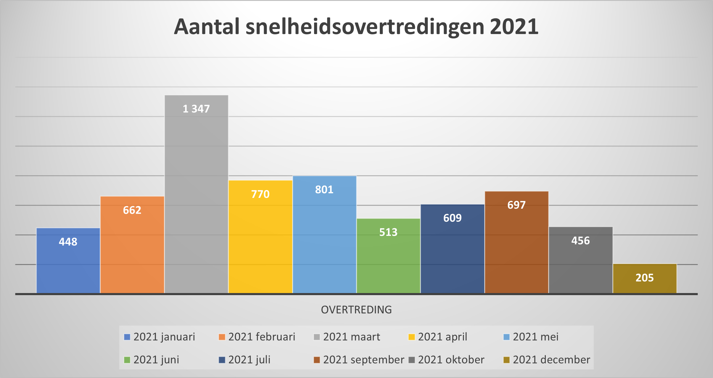 In totaal zijn vorige maand 955 voertuigen gecontroleerd op snelheid.