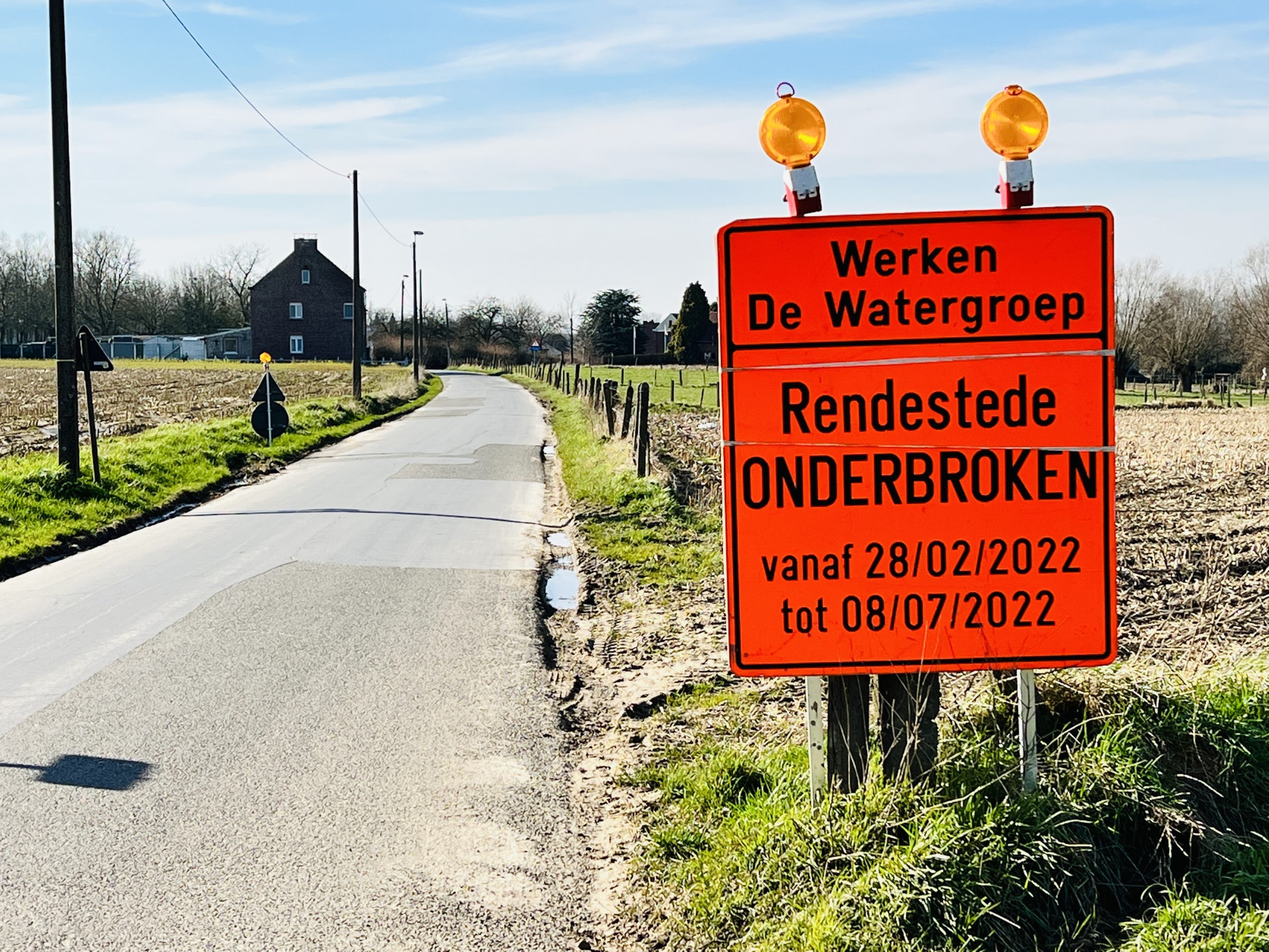 Op Rendestede laat De Watergroep een nieuwe waterleiding aanleggen. Voor deze werken zal de werkzone zijn afgesloten tussen de kruispunten met Roost en de Heirebaan.