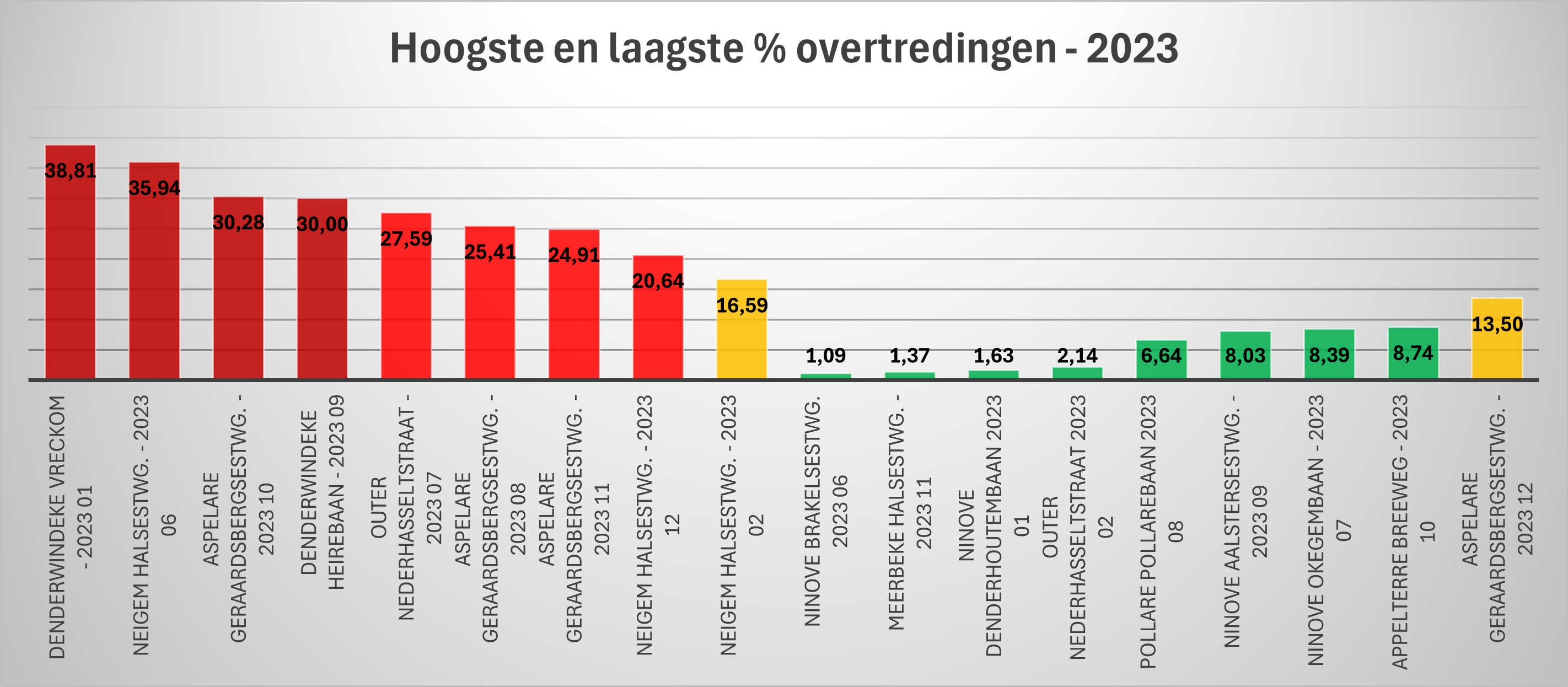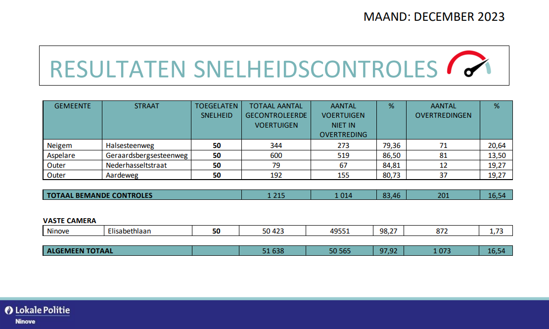 NINOVE – Met de resultaten van de snelheidscontroles in december 2023, kunnen we meteen de globale gegevens voor het hele afgelopen jaar weergeven.