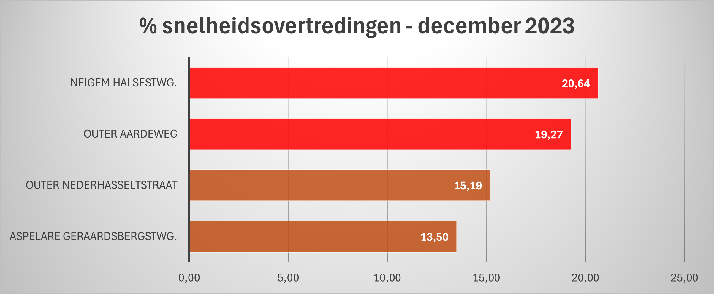 In december 2023 reed 20,64 % van de gecontroleerde chauffeurs in de bebouwde kom op de Halsesteenweg (Neigem) sneller dan de toegelaten 50 m/uur.