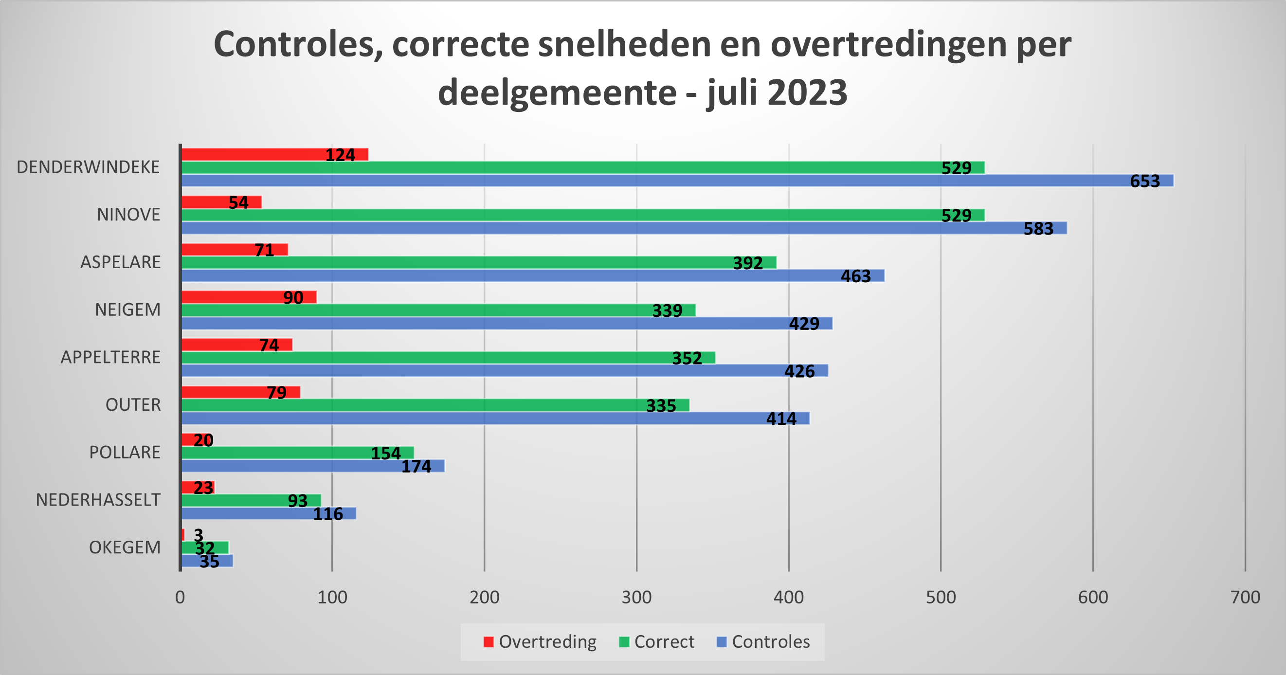 In Appelterre-Eichem, Lieferinge, Meerbeke, Nederhasselt, Okegem en Voorde gebeurden geen snelheidscontroles.