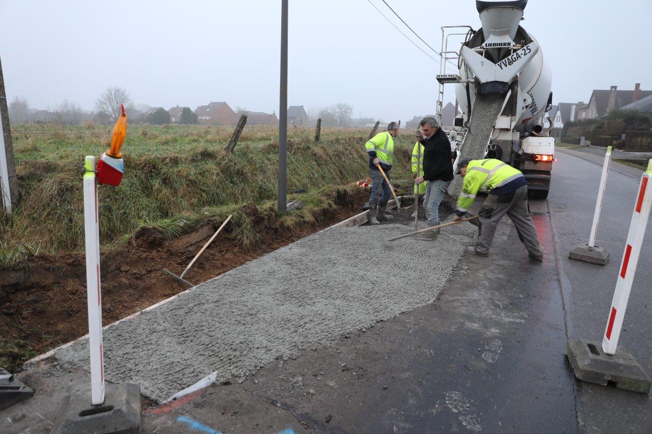 De betonneringswerken zijn zaterdag uitgevoerd, waarna het beton moet uitharden gedurende een 40-tal uren.